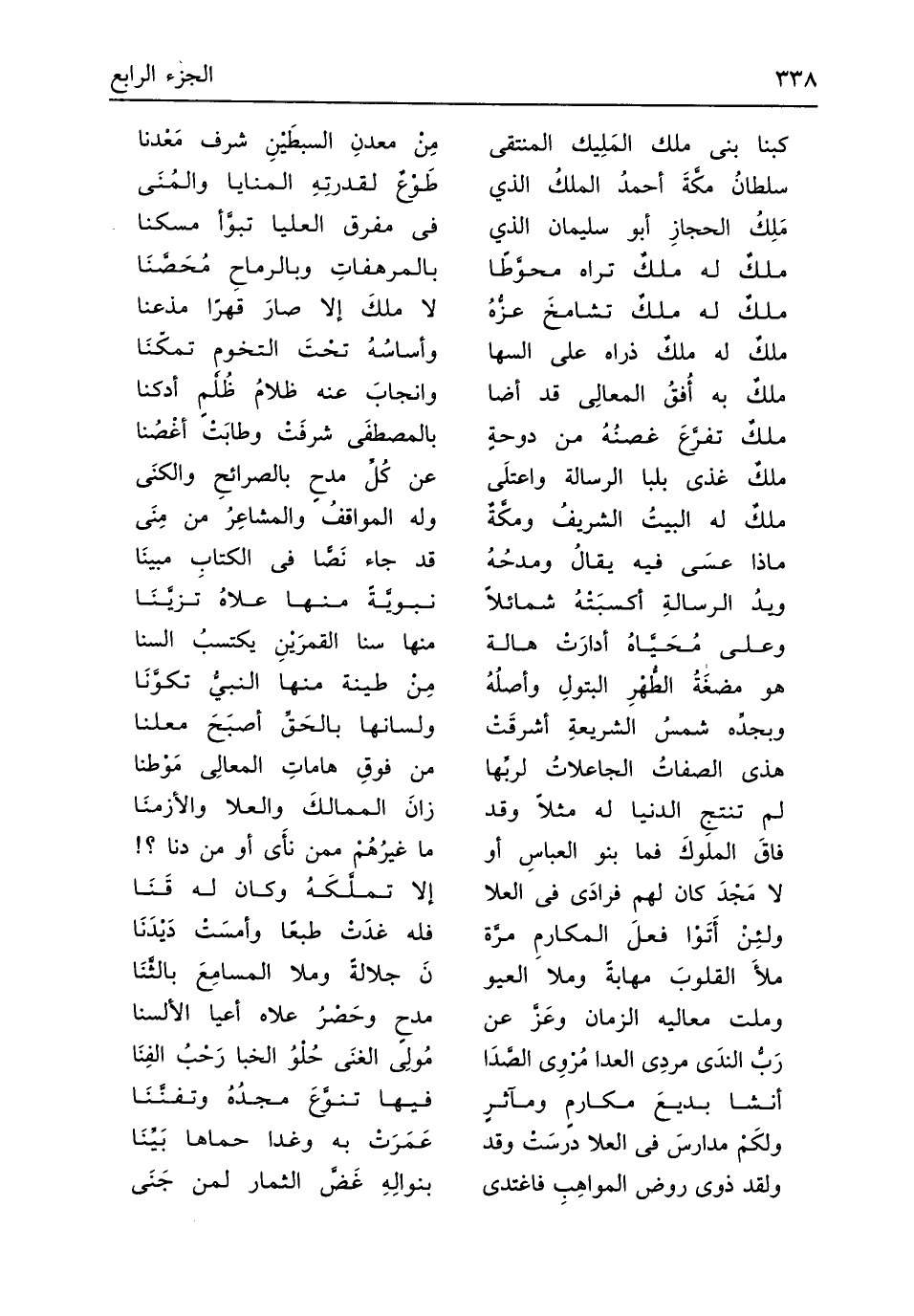 (مَلِكُ الحجازِ أَبُو سُلَيْمَان الَّذِي ... فِي مفرق الْعليا تبوَّأ مسكنا)