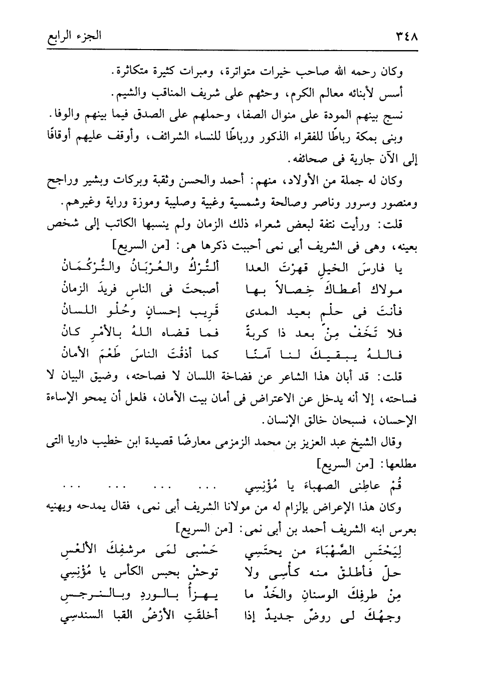 وَكَانَ هَذَا الْإِعْرَاض بإلزام لَهُ من مَوْلَانَا الشريف أبي نمي فَقَالَ يمدحه ويهنيه بعرس ابْنه الشريف أَحْمد بن أبي نمي // (من السَّرِيع) //