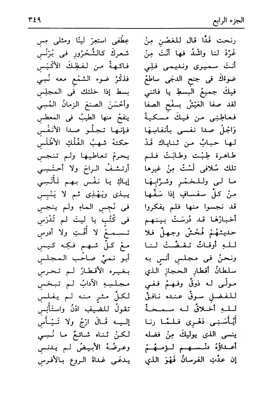(ونحنُ فِي مجلسِ أنسٍ بِهِ ... أَبُو نميِّ صَاحب المجلسِ)
