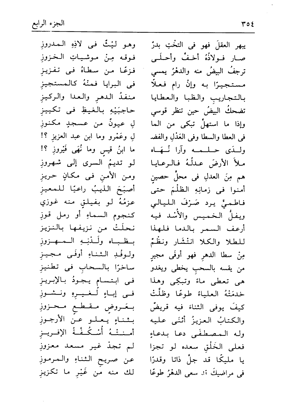 (ملأَ الأرضَ عدلُهُ فالرعايا ... لَو تديمُ السرى إِلَى شهروزِ)