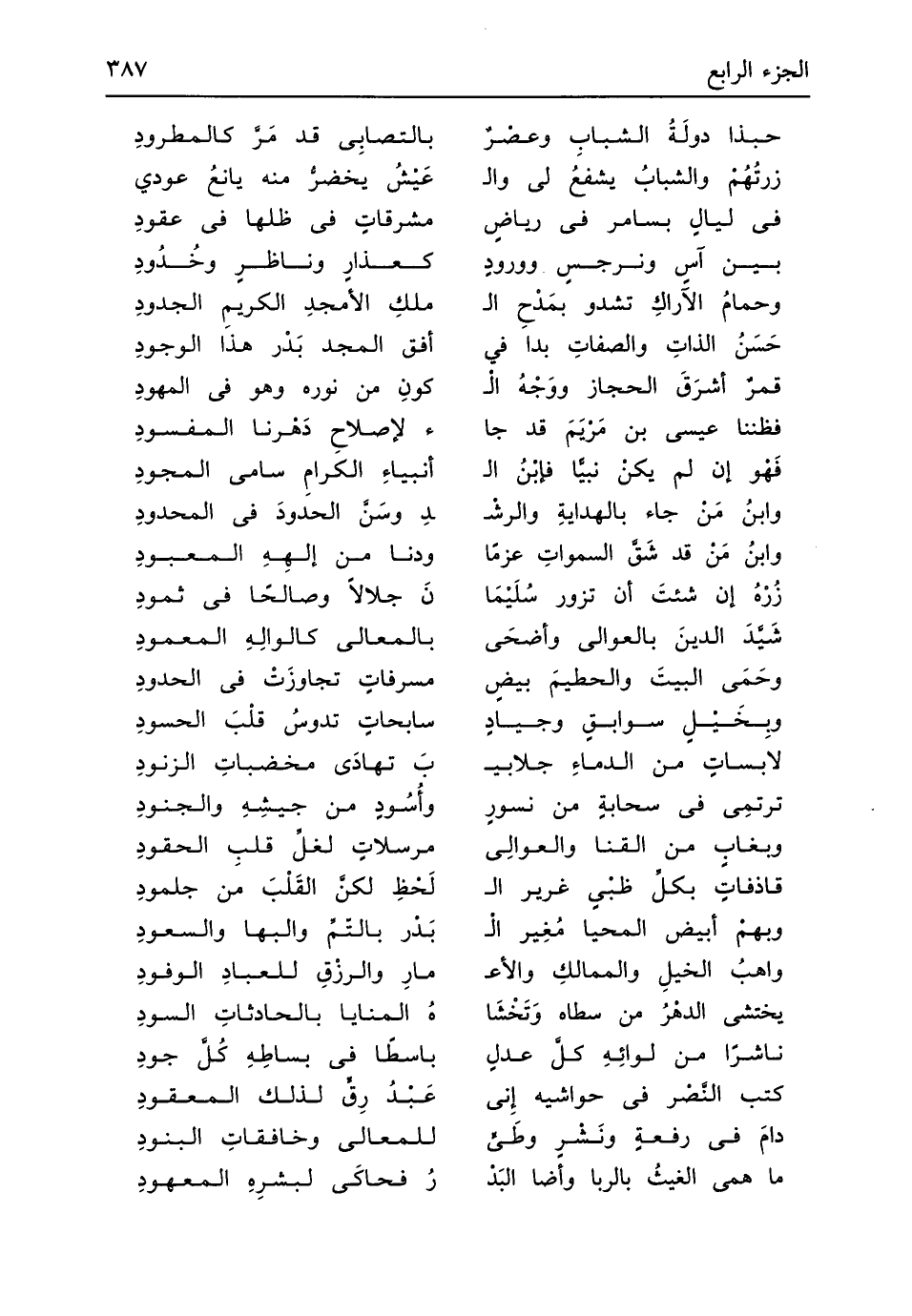 (حبذا دولَةُ الشبابِ وعصْرٌ ... بالتصابِى قد مَرَّ كالمطرودِ)