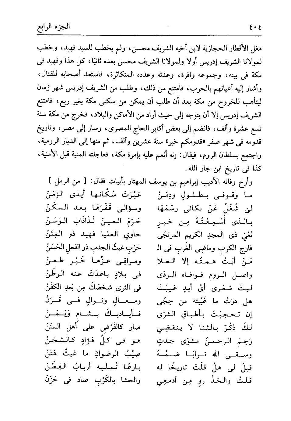 (فارج الكربِ وماضِى الغربِ فى الحَرْبِ ... غيثُ الجدبِ ذُو الفعلِ الحَسَنْ)