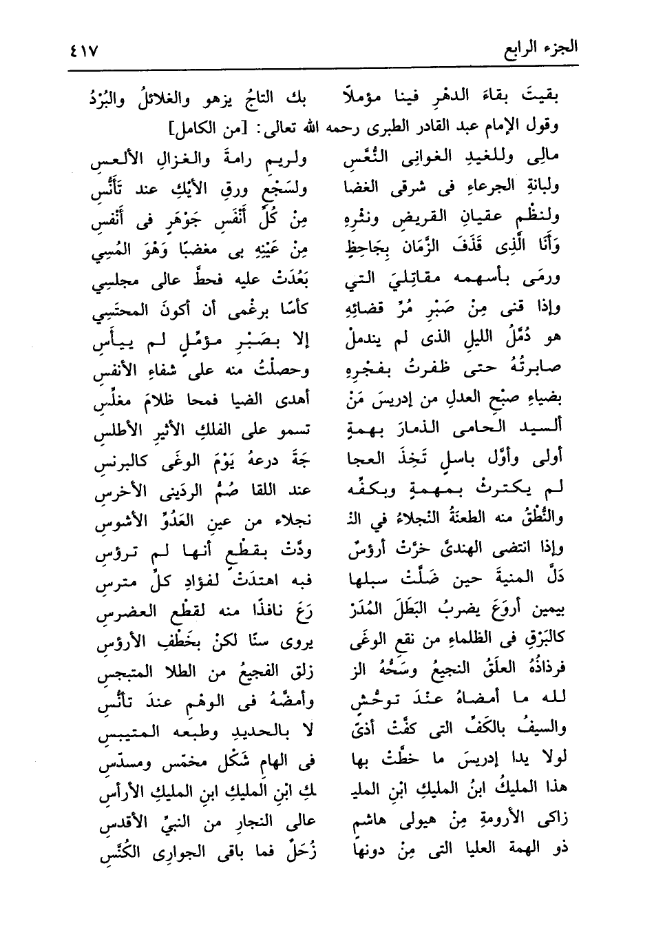 وَقَول الإِمَام عبد الْقَادِر الطَّبَرِيّ رَحمَه الله تَعَالَى // (من الْكَامِل) //
