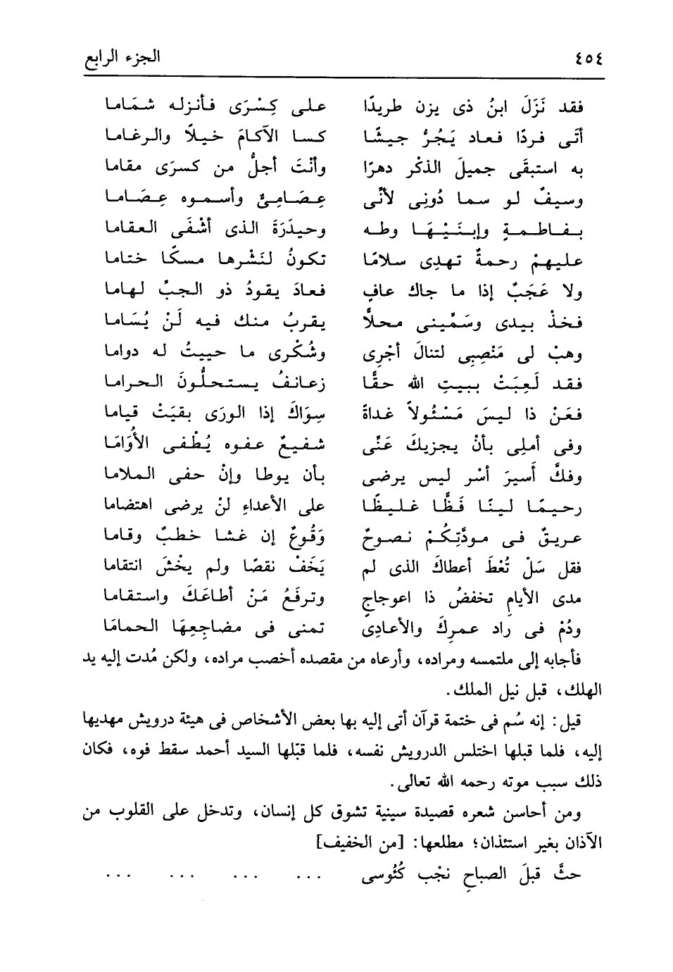 (بِهِ استبقَى جميلَ الذكْر دهراً ... وأنْتَ أجلُّ من كسرَى مقَاما)