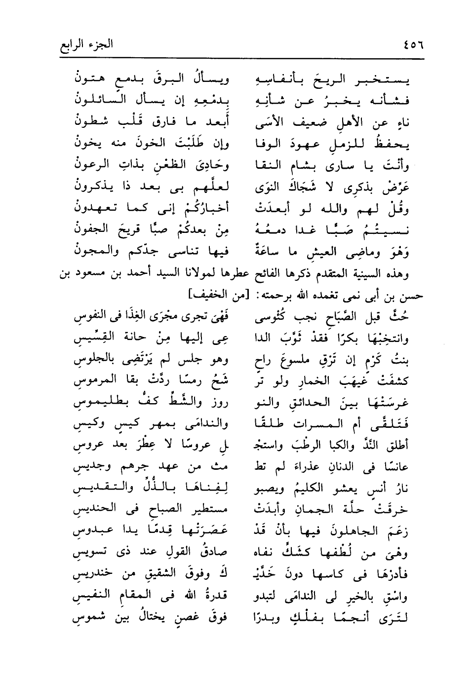 وَهَذِه السينية الْمُتَقَدّم ذكرهَا الفائح عطرها لمولانا السَّيِّد أَحْمد بن مَسْعُود بن حسن بن أبي نمي تغمده الله برحمته // (من الْخَفِيف) //