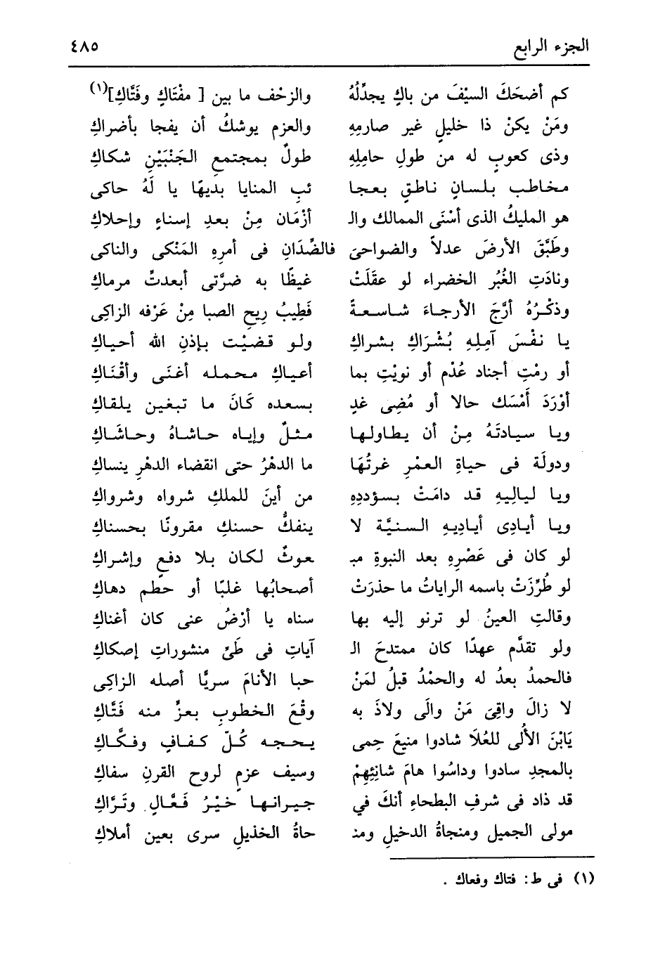 (هُوَ المليكُ الذى أسْنَى الممالك والأزْمَان ... مِنْ بعدِ إسناءٍ وإحلاكِ)