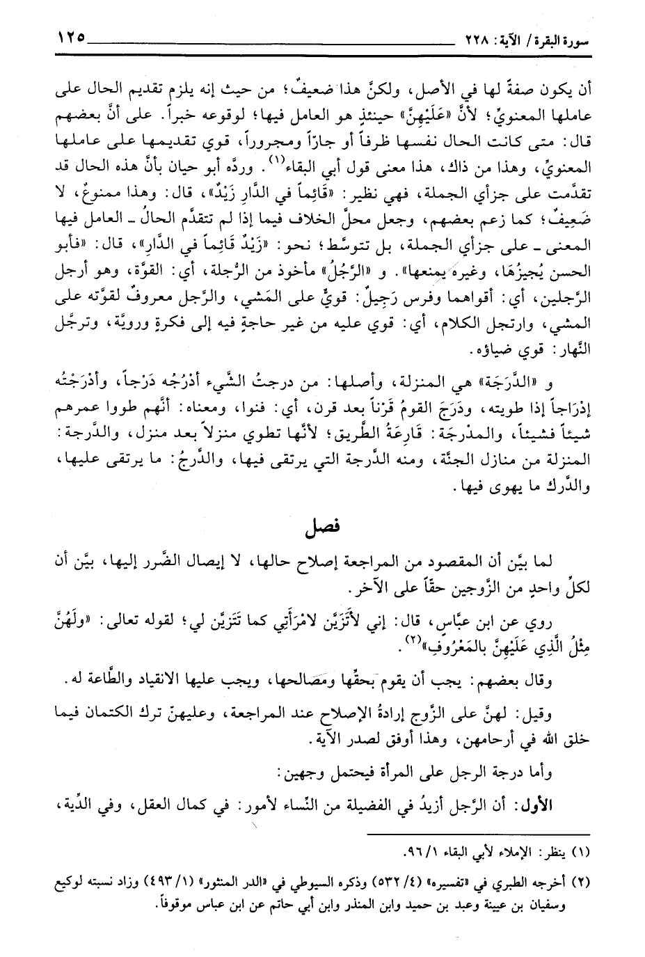 وأما درجة الرجل على المرأة فيحتمل وجهين: