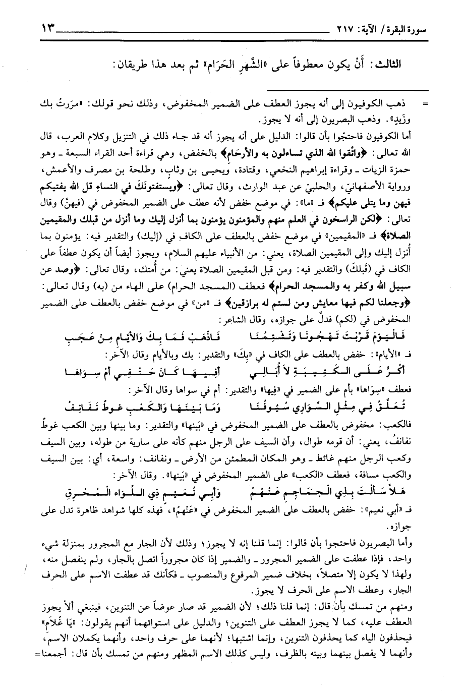 الثالث: أَنْ يكون معطوفاً على {الشهر الحرام} ثم بعد هذا طريقان: