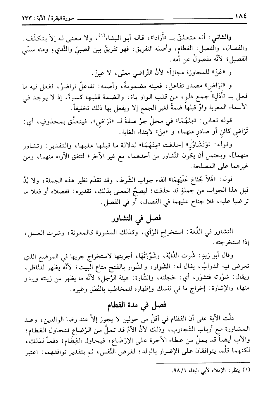 والثاني: أنه متعلقٌ ب «أَرَادَا» ، قاله أبو البقاء، ولا معنى له إلاَّ بتكلّف. والفصال، والفصل: الفطام، وأصله التفريق، فهو تفريقٌ بين الصبيِّ والثَّدي، ومنه سمِّي الفصيل؛ لأنَّه مفصولٌ عن أمه.