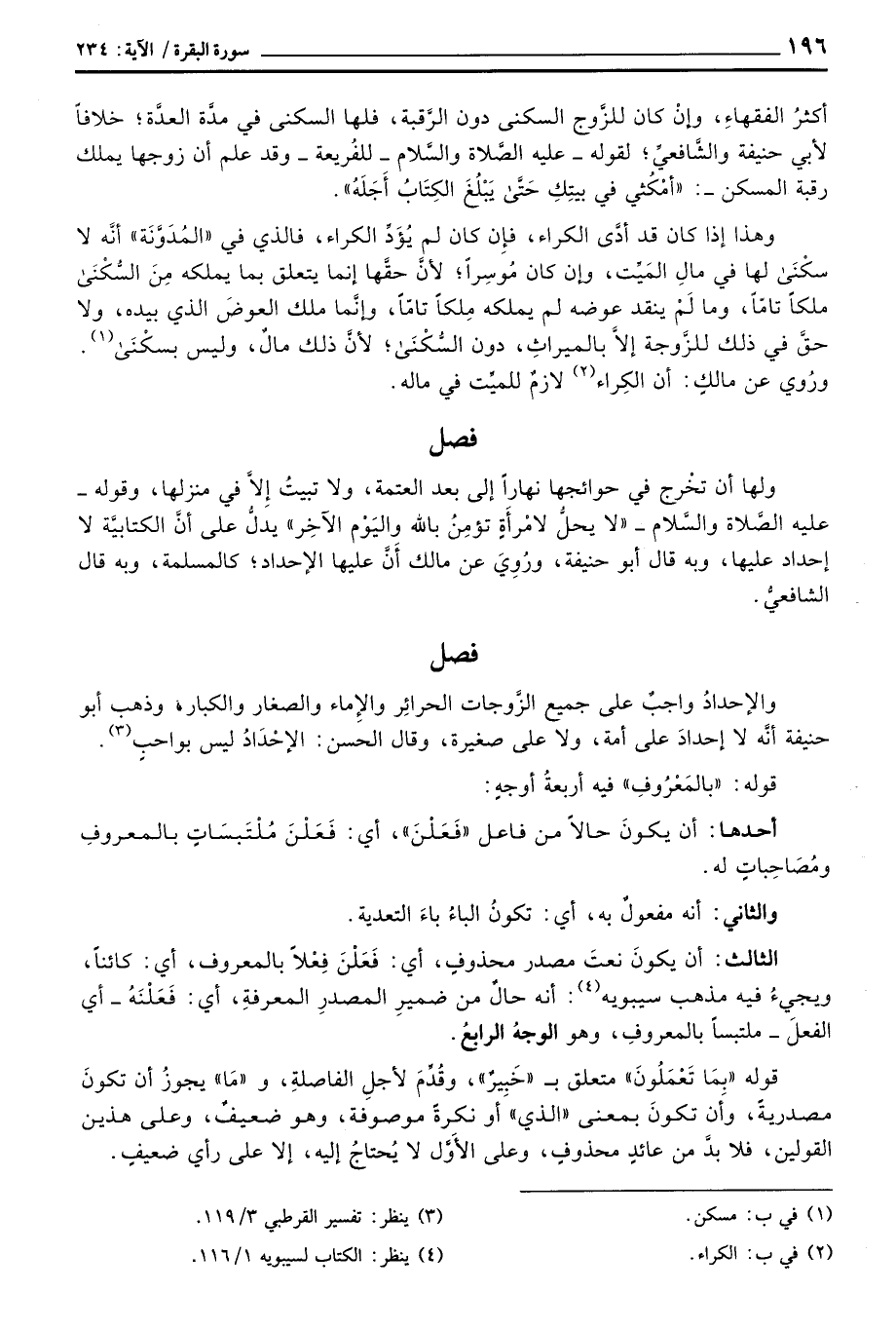 أكثرُ الفقهاءِ، وإِن كان للزَّوج السكنى دون الرَّقبة، فلها السكنى في مدَّة العدَّة؛ خلافاً لأبي حنيفة والشَّافعيِّ؛ لقوله - عليه الصَّلاة والسَّلام - للفُريعة - وقد علم أن زوجها يملك رقبة المسكن -: «أمْكُثي في بيتِكِ حَتَّى يَبْلُغَ الكِتَابُ أَجَلَهُ» .