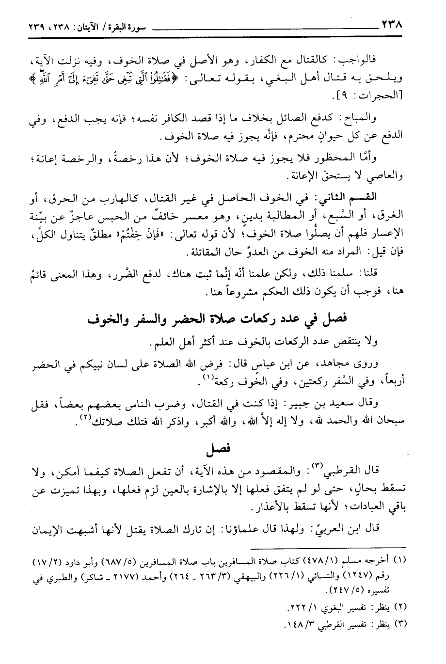 فصل في عدد ركعات صلاة الحضر والسفر والخوف