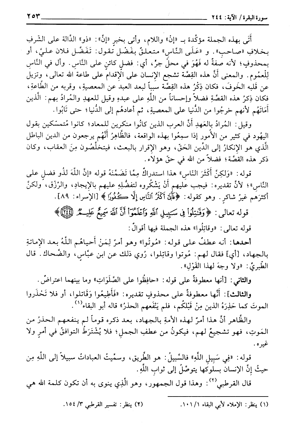 والظَّاهر أنَّ هذا أمرٌ لهذه الأمةِ بالجهاد، بعد ذكره قوماً لم ينفعهم الحذرُ من المَوتِ، فهو تشجيعٌ لهم، فيكونُ من عطفِ الجملِ؛ فلا يُشْتَرَطُ التوافقُ في أمرٍ ولا غيره.