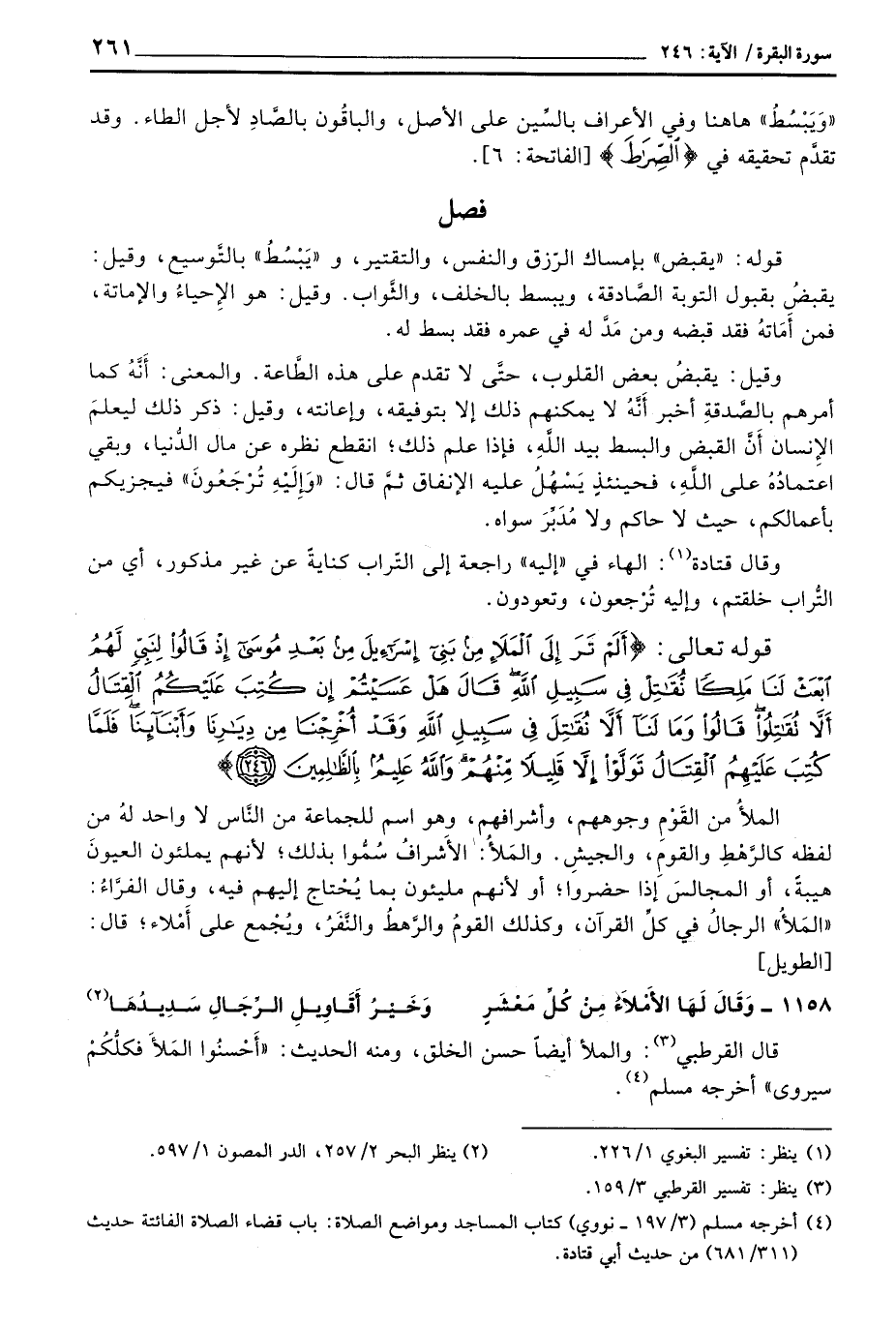 قوله: «يقبض» بإمساك الرّزق والنفس، والتقتير، و «يَبْسُطُ» بالتَّوسيع، وقيل: يقبضُ بقبول التوبة الصَّادقة، ويبسط بالخلف، والثَّواب. وقيل: هو الإِحياءُ والإماتة، فمن أَمَاتهُ فقد قبضه ومن مَدَّ له في عمره فقد بسط له.