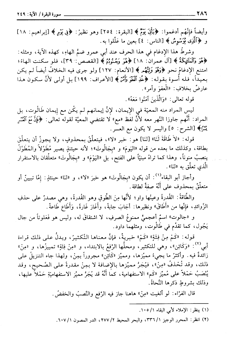 ليس المراد منه المعيّة في الإِيمان، لأنَّ إيمانهم لم يكُن مع إِيمان طَالُوت، بل المراد: أَنَّهم جاوزا النَّهر معه لأَنَّ لفظ «مع» لا تقتضي المعيَّة لقوله تعالى: {فَإِنَّ مَعَ العسر يُسْراً} [الشرح: 5] واليسر لا يكون مع العسر.