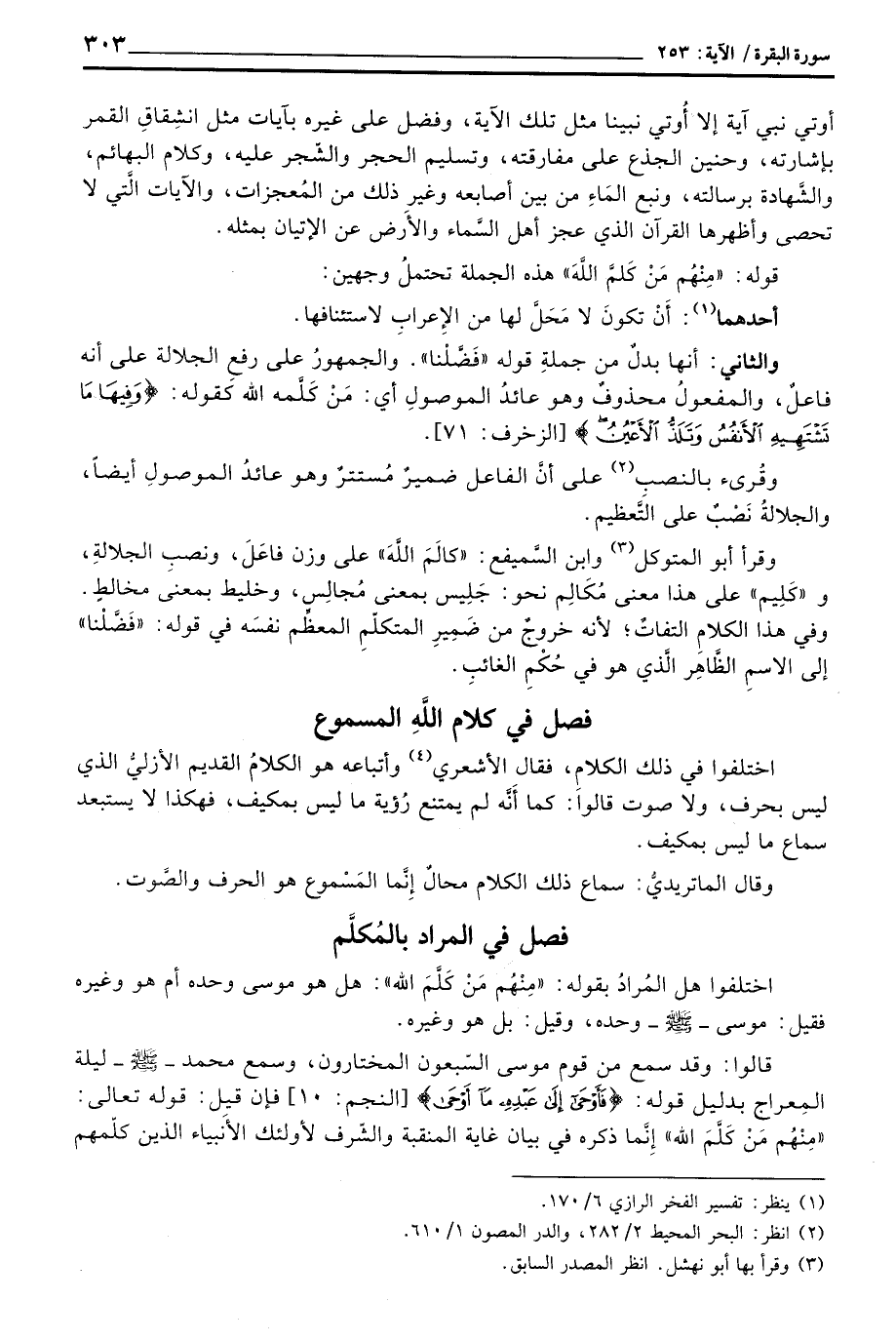 اختلفوا هل المُرادُ بقوله: {مِّنْهُمْ مَّن كَلَّمَ الله} هل هو موسى وحده أم هو وغيره فقيل: موسى - صَلَّى اللَّهُ عَلَيْهِ وَسَلَّم َ - وحده، وقيل: بل هو وغيره.