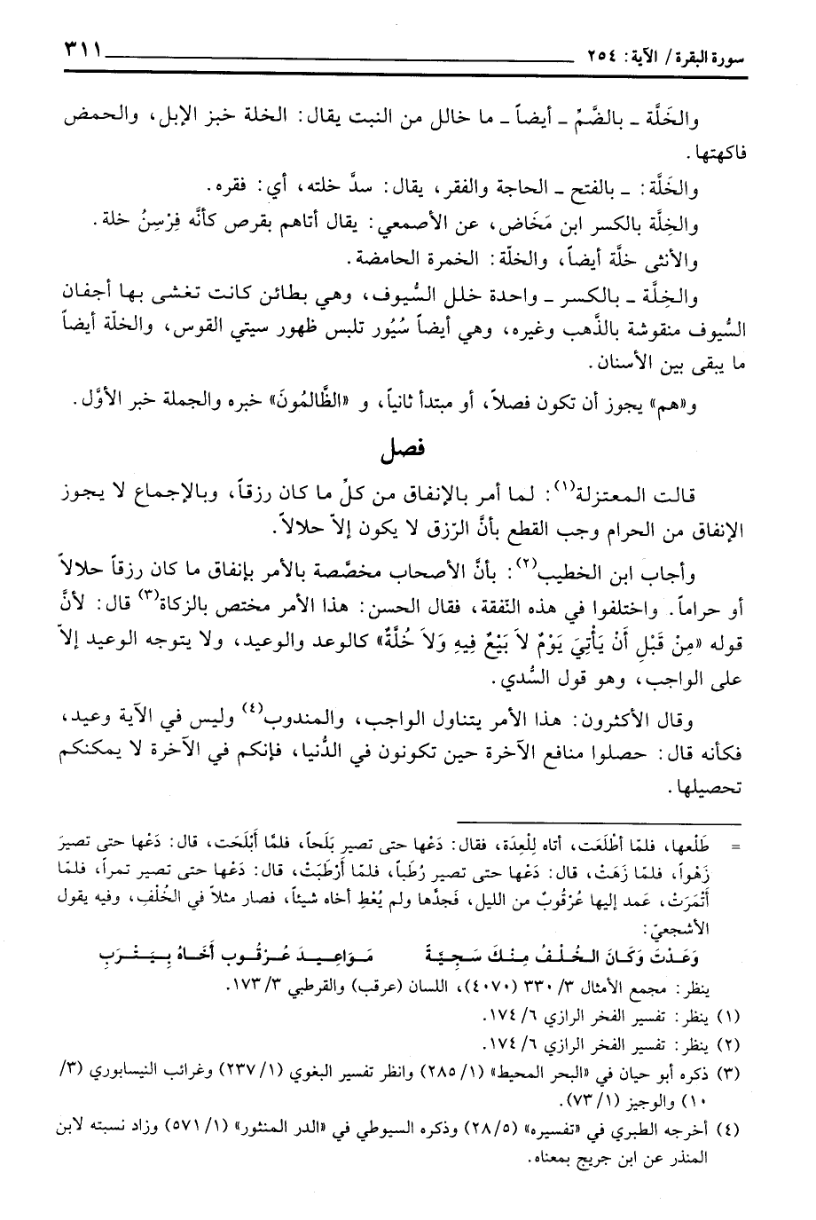 وأجاب ابن الخطيب: بأنَّ الأصحاب مخصَّصة بالأمر بالإنفاق ما كان رزقاً حلالاً أو حراماً. واختلفوا في هذه النَّفقة، فقال الحسن: هذا الأمر مختص بالزكاة قال: لأنَّ قوله {مِّن قَبْلِ أَن يَأْتِيَ يَوْمٌ لاَّ بَيْعٌ فِيهِ وَلاَ خُلَّةٌ} كالوعد والوعيد، ولا يتوجه الوعيد إلاَّ على الواجب، وهو قول السُّدي.