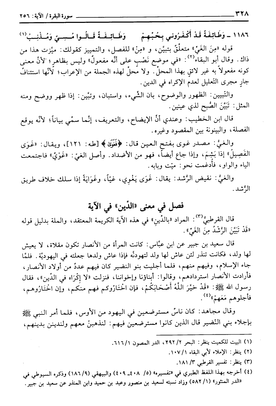 قال القرطبيُّ: المراد «بالدِّينِ» في هذه الآية الكريمة المعتقد، والملة بدليل قوله {قَد تَّبَيَّنَ الرشد مِنَ الغي} .