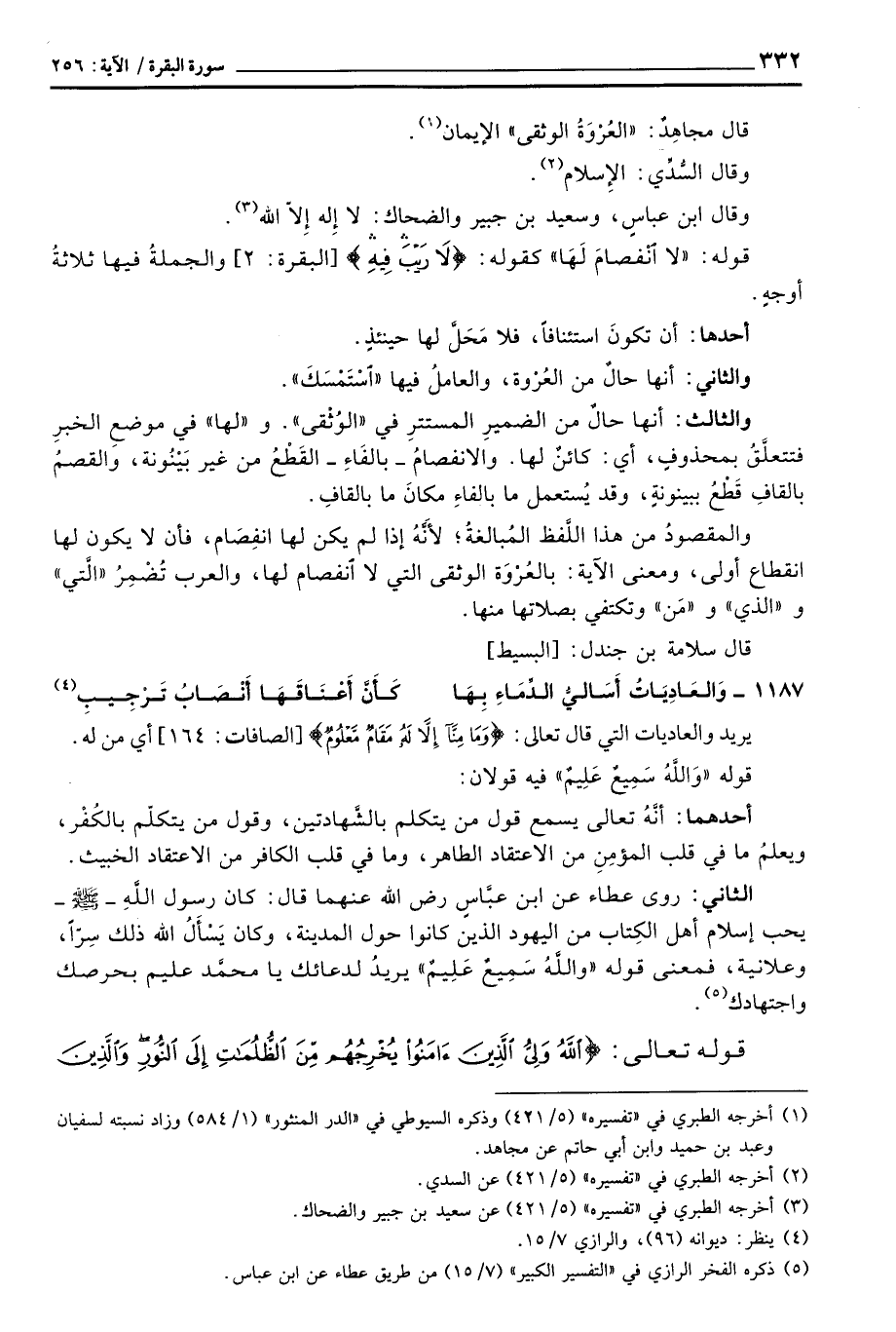 قال مجاهِدٌ: «العُرْوَةُ الوثقى» الإيمان.