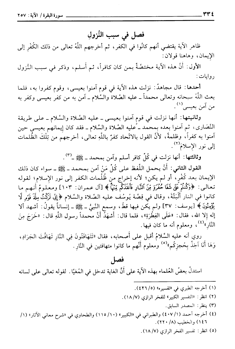 وثانيتهما: أنها نزلت في قوم آمنوا بعيسى - عليه الصَّلاة والسَّلام - على طريقة النَّصَارى، ثم آمنوا بعده بمحمد - عليه الصَّلاة والسَّلام - فقد كان إِيمانهم بعيسى حين آمنوا به كفراً، وظلمةً، لأَنَّ القول بالاتِّحاد كفرٌ باللهِ تعالى، أخرجهم من تِلْكَ الظُّلمات إلى نور الإِسلامِ.