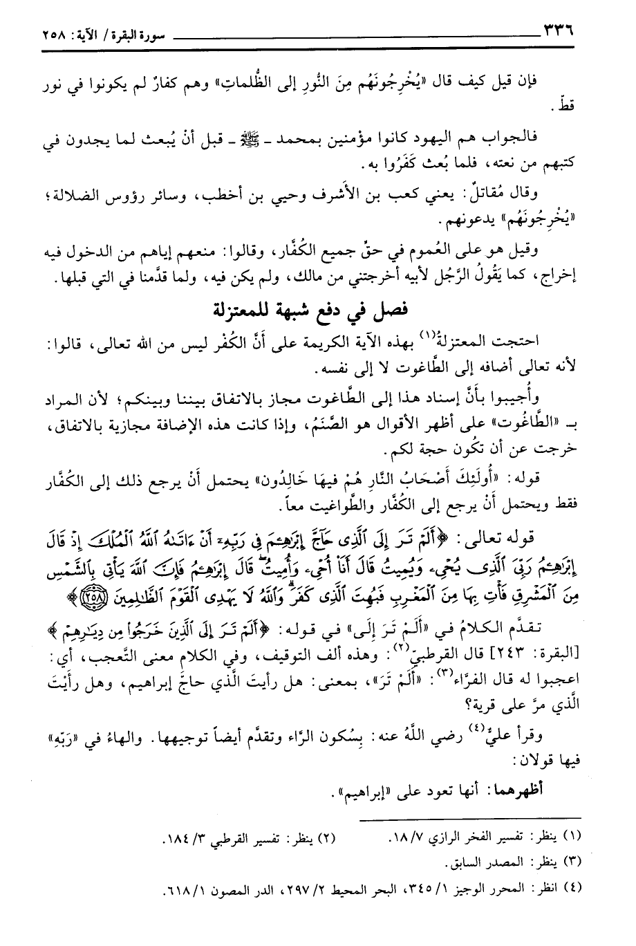 احتجت المعتزلةُ بهذه الآية الكريمة على أَنَّ الكُفْر ليس من الله تعالى، قالوا: لأنه تعالى أضافه إلى الطَّاغوت لا إلى نفسه.