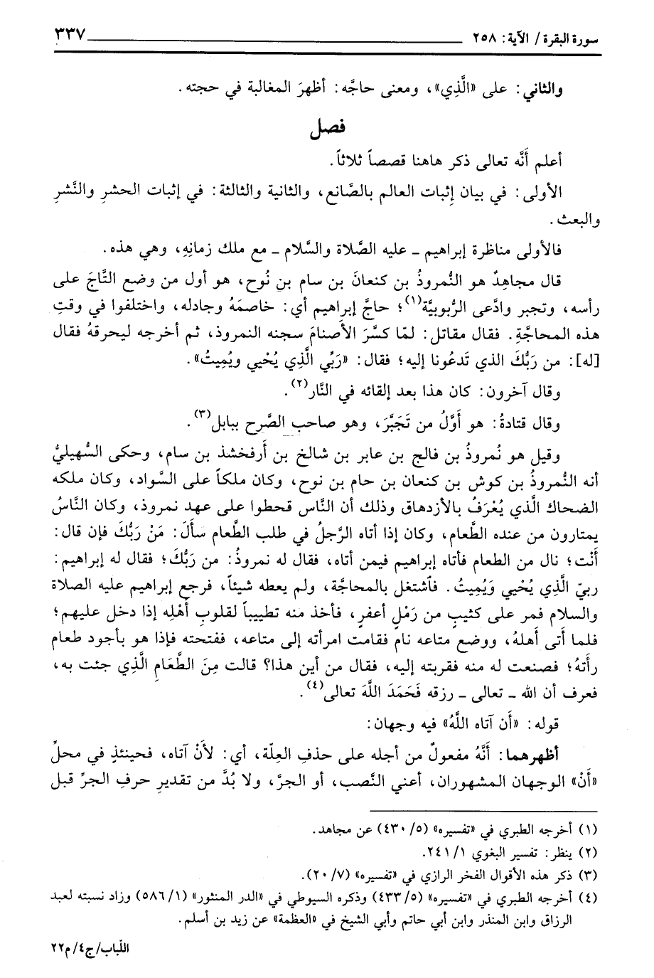 قال مجاهِدٌ هو النُّمروذُ بن كنعانَ بن سام بن نُوح، هو أول من وضع التَّاجَ على رأسه، وتجبر وادَّعى الرُّبوبية؛ حاجَّ إبراهيم أي: خاصمَهُ وجادله، واختلفوا في وقتِ هذه المحاجَّةِ. فقال مقاتل: لمّا كسَّرَ الأَصنامَ سجنه النمروذ، ثم أخرجه ليحرقهُ فقال [له] : من رَبُّكَ الذي تَدعُونا إليه؛ فقال: {رَبِّيَ الذي يُحْيِي وَيُمِيتُ} .