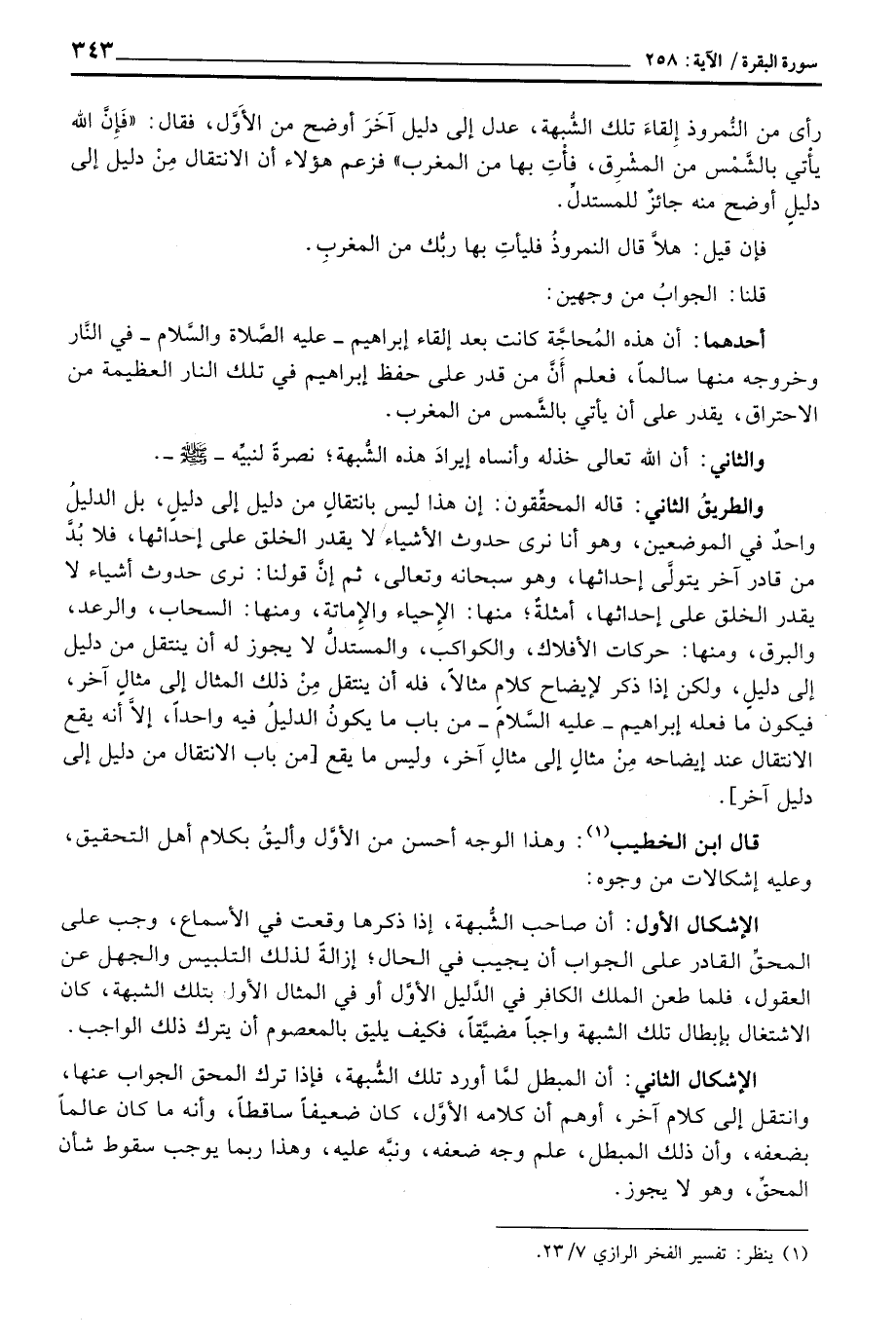 قال ابن الخطيب: وهذا الوجه أحسن من الأوَّل وأليقُ بكلام أهل التحقيق، وعليه إشكالات من وجوه: