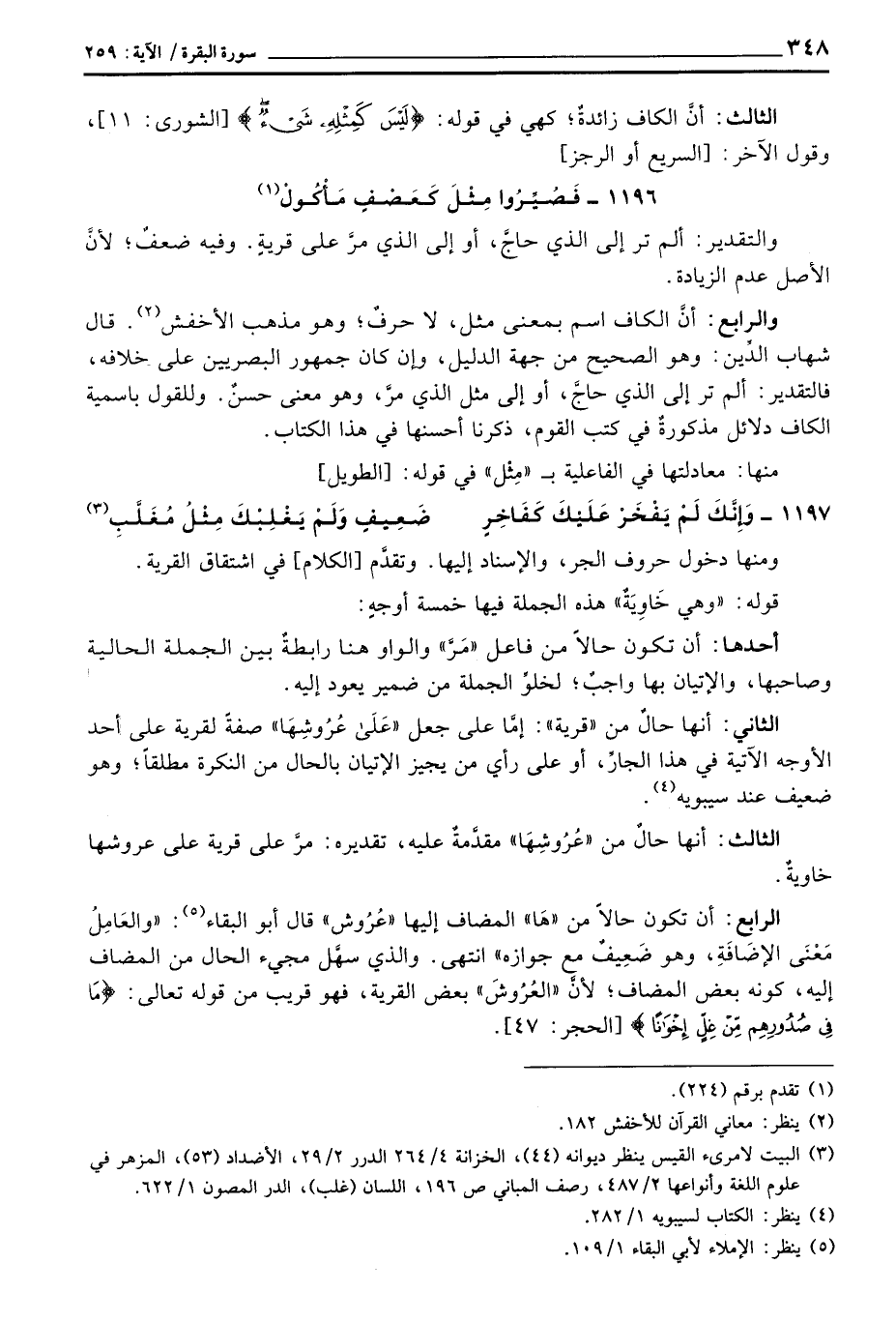 1196 - فَصُيِّرُوا مِثْلَ كَعَصْفٍ مَأْكُولْ ... والتقدير: ألم تر إلى الذي حاجَّ، أو إلى الذي مرَّ على قريةٍ. وفيه ضعفٌ؛ لأنَّ الاصل عدم الزيادة.