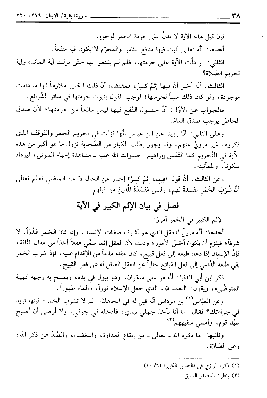 فإن قيل هذه الآية لا تدلُّ على حرمة الخمر لوجوهٍ: