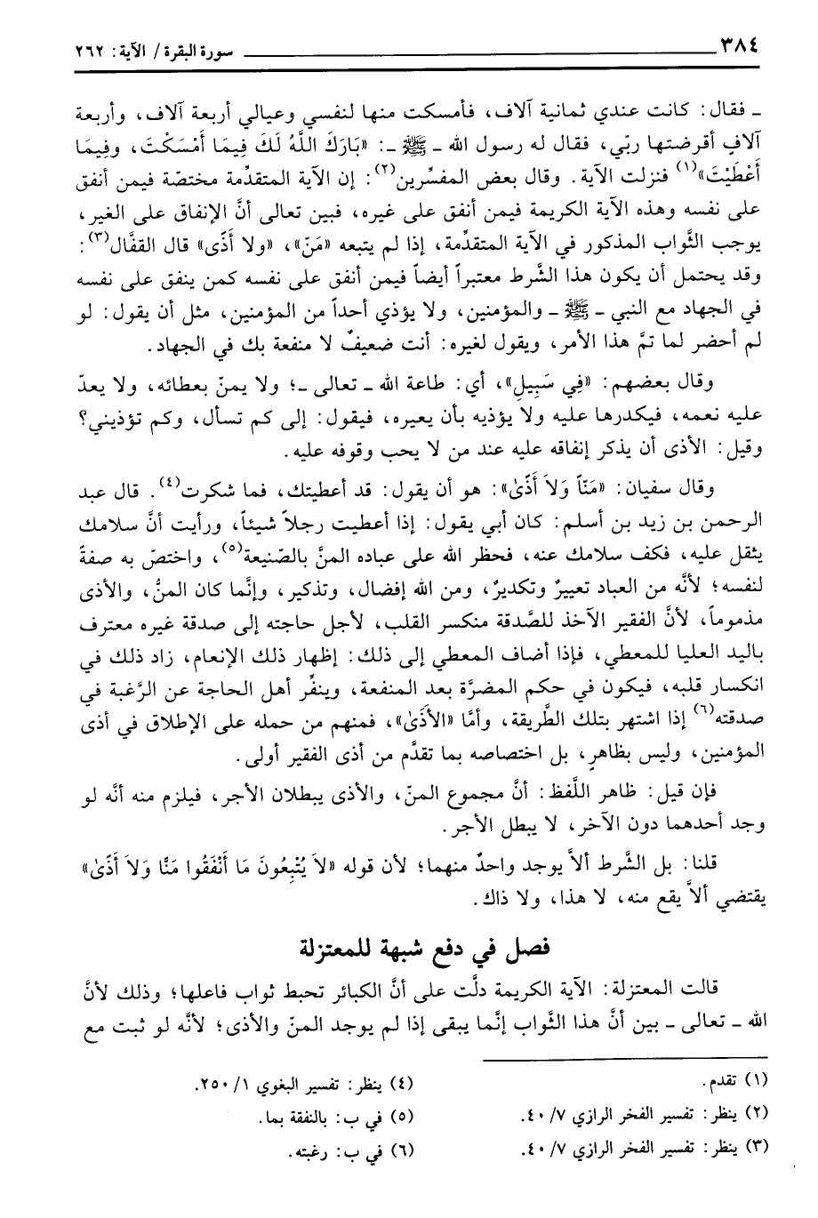 قالت المعتزلة: الآية الكريمة دلَّت على أنَّ الكبائر تحبط ثواب فاعلها؛ وذلك لأنَّ الله - تعالى - بين أنَّ هذا الثَّواب إنَّما يبقى إذا لم يوجد المنّ والأذى؛ لأنَّه لو ثبت مع