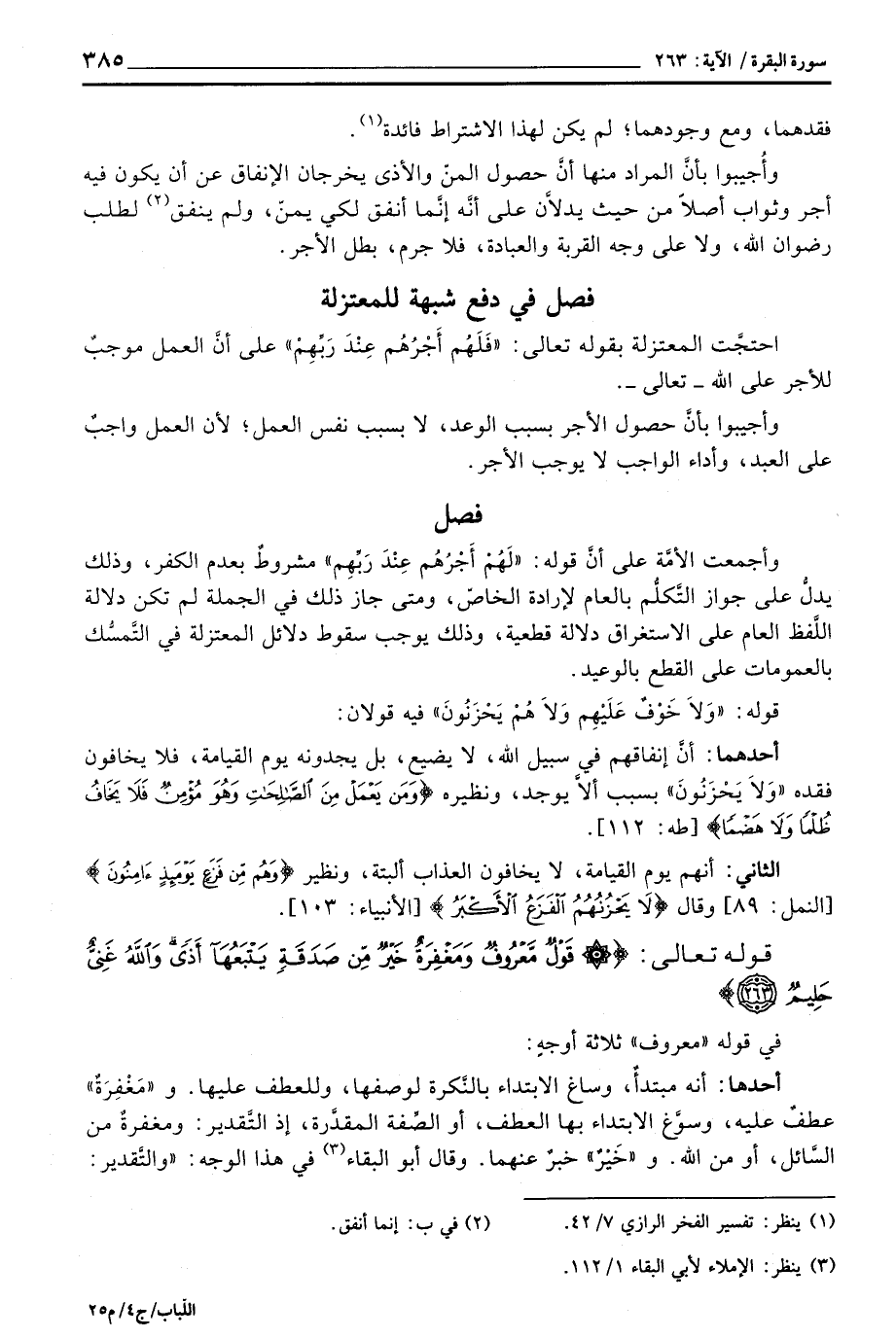 فصل في دفع شبهة للمعتزلة