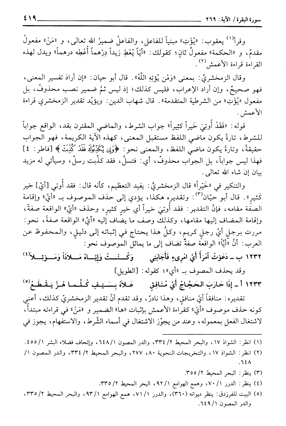 وقال الزمخشريُّ: بمعنى «وَمْن يُؤْتِهِ اللهُ» . قال أبو حيان: «إِن أرادَ تفسير المعنى، فهو صحيحٌ، وإن أراد الإعراب، فليس كذلك؛ إذ ليس ثمَّ ضمير نصب محذوفٌ، بل مفعول» يُؤْتِ «من الشرطية المتقدمة» . قال شهاب الدين: ويؤيِّد تقدير الزمخشري قراءة الأعمش.