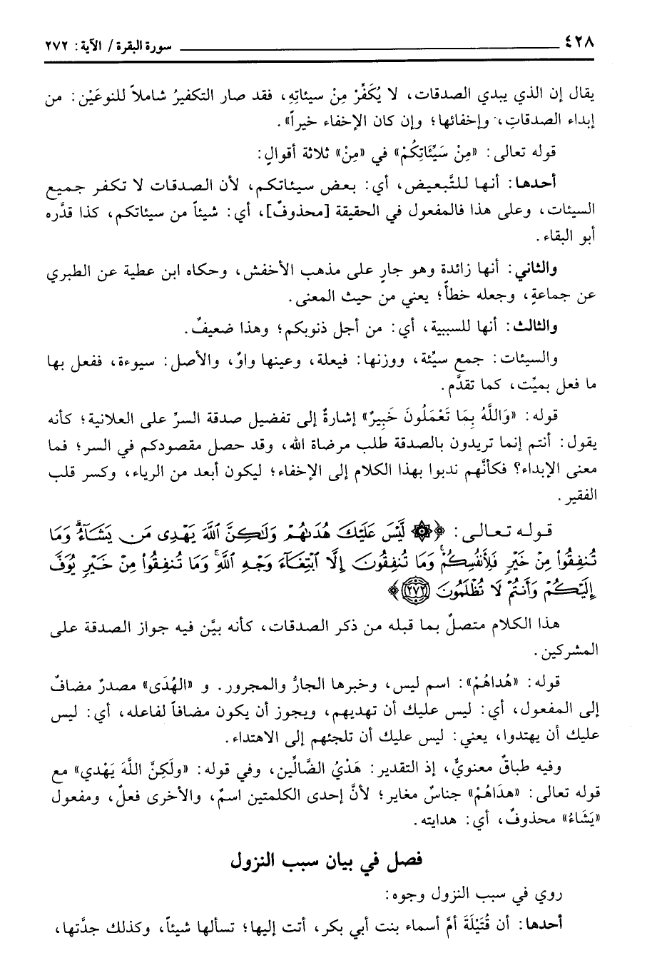 هذا الكلام متصلٌ بما قبله من ذكر الصدقات، كأنه بيَّن فيه جواز الصدقة على المشركين.