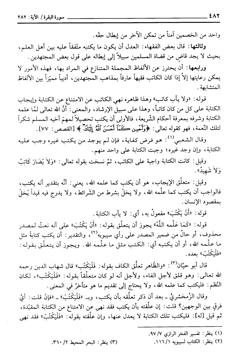 وقيل: متعلِّق الإيجاب، هو أن يكتب كما علمه الله، يعني: أنَّه بتقدير أنه يكتب، فالواجب أن يكتب كما علَّمه الله، ولا يخلّ بشرط من الشّرائط، ولا يدرج فيه قيداً يُخلّ بمقصود الإنسان.