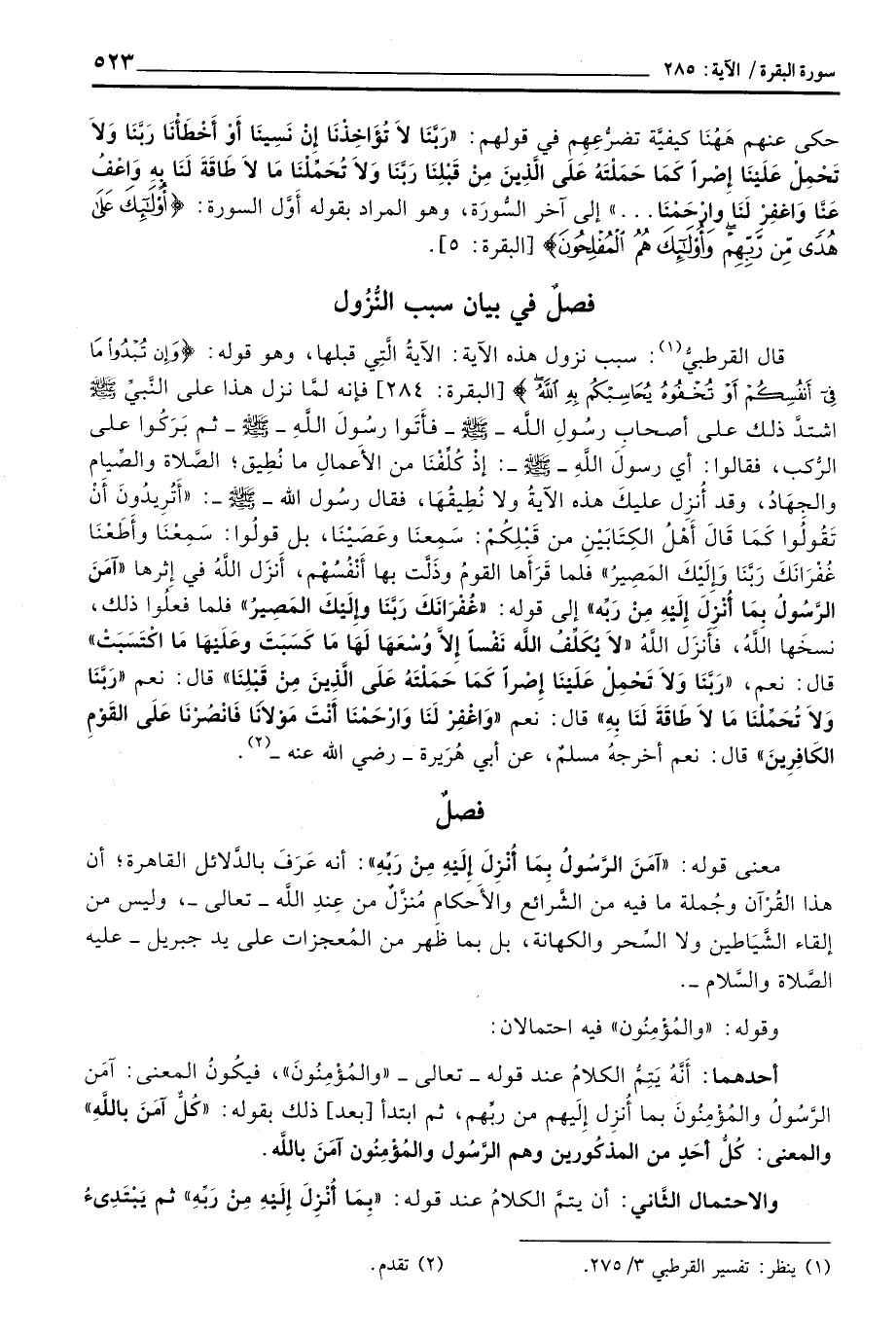 فصلٌ في بيان سبب النُّزُول