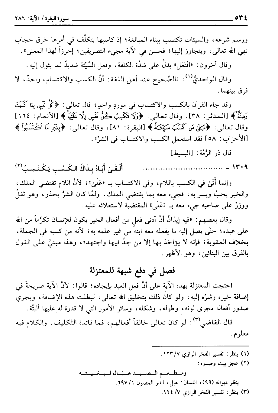 فصل في دفع شبهة للمعتزلة
