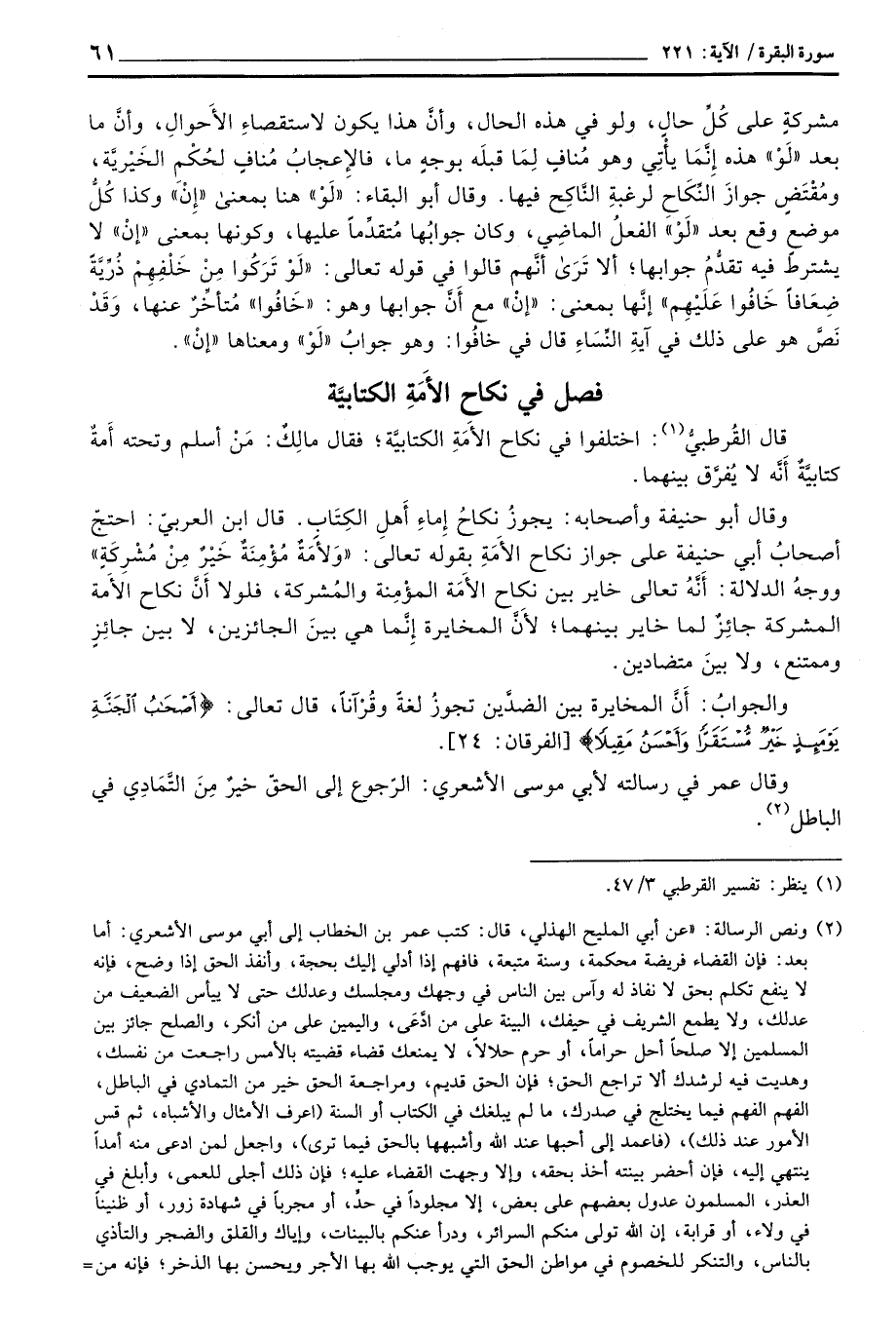 قال القُرطبيُّ: اختلفوا في نكاح الأَمَةِ الكتابيَّة؛ فقال مالِكٌ: مَنْ أسلم وتحته أَمَةٌ كتابيَّةٌ أَنَّه لا يُفرَّق بينهما.
