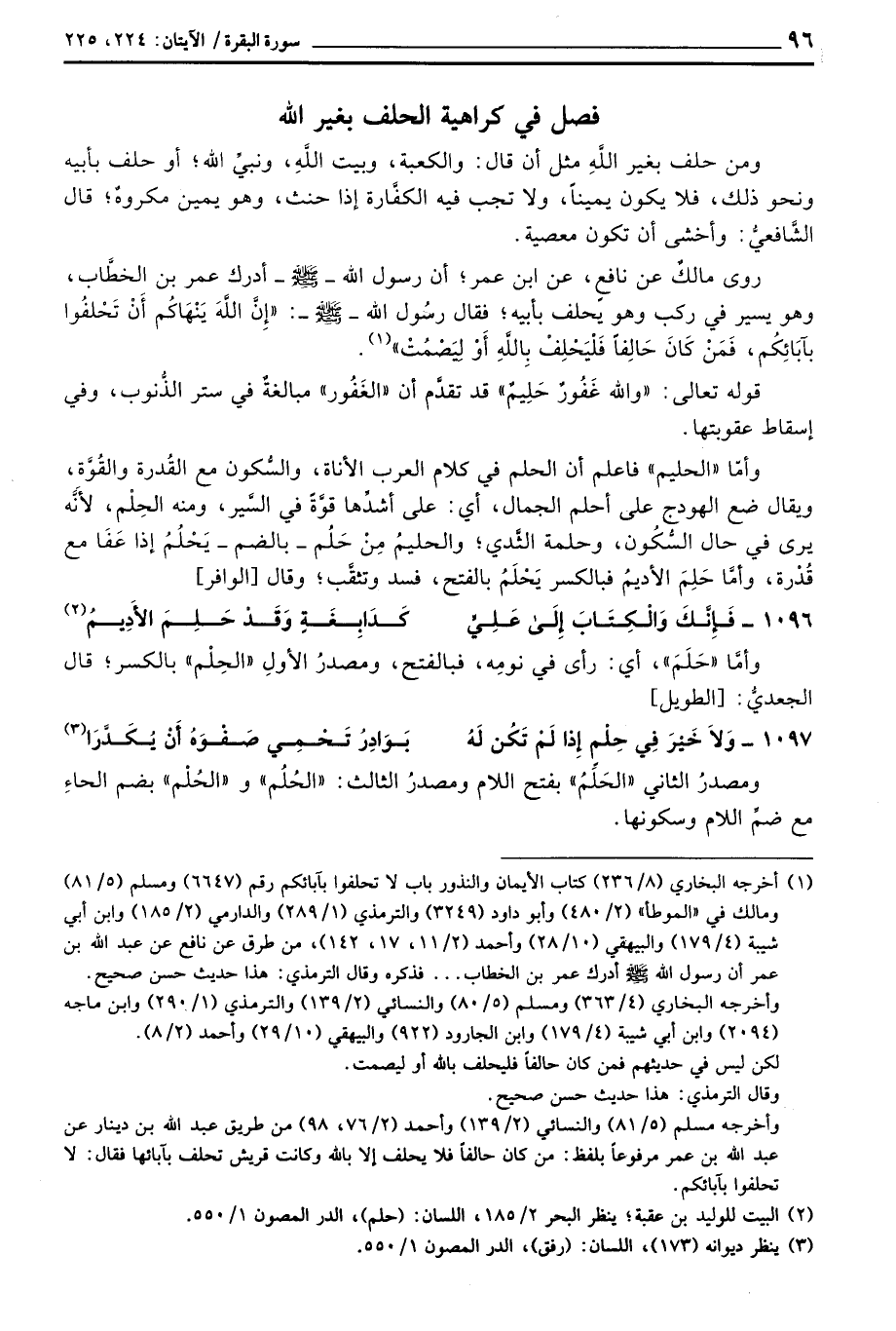 روى مالكٌ عن نافعٍ، عن ابن عمر؛ أن رسول الله - صَلَّى اللَّهُ عَلَيْهِ وَسَلَّم َ - أدرك عمر بن الخطَّاب، وهو يسير في ركب وهو يحلف بأبيه؛ فقال رسولُ الله - صَلَّى اللَّهُ عَلَيْهِ وَسَلَّم َ - «إِنَّ اللهَ يَنْهَاكُم أَنْ تَحْلفُوا بآبَائِكُم، فَمَنْ كَانَ حَالِفاً فَلْيَحْلِفْ بِاللهِ أَوْ لِيَصْمُتْ» .