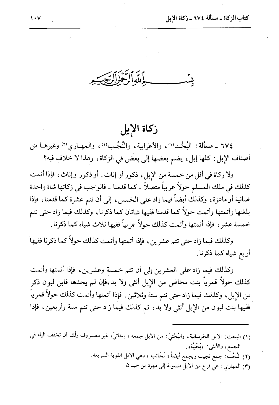 بِسْمِ اللَّهِ الرَّحْمَنِ الرَّحِيمِ زَكَاةُ الْإِبِلِ 674 - مَسْأَلَةٌ: