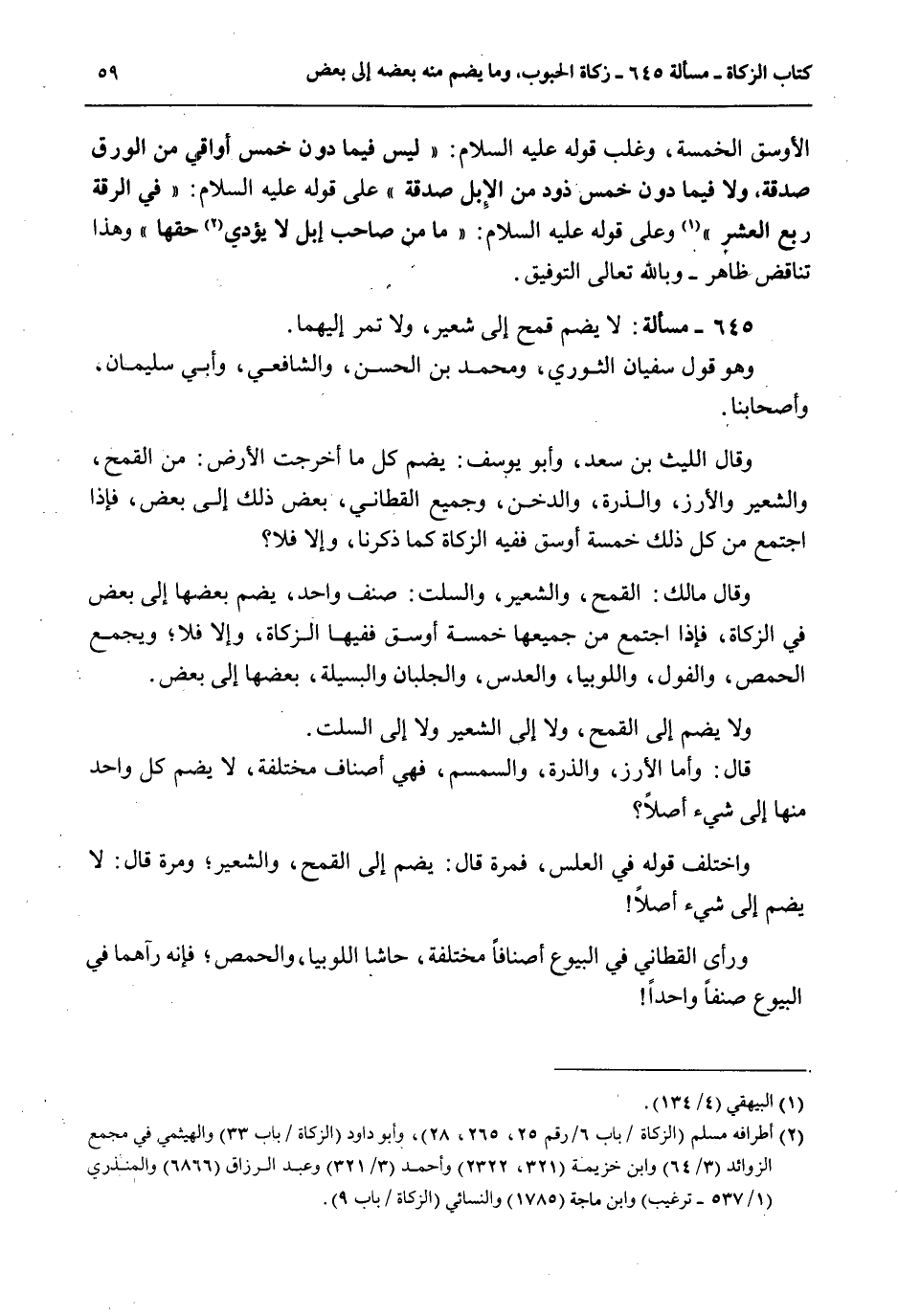 الْأَوْسُقِ الْخَمْسَةِ، وَغَلَّبَ قَوْلَهُ - عَلَيْهِ السَّلَامُ -: «لَيْسَ فِيمَا دُونَ خَمْسِ أَوَاقِيَّ مِنْ الْوَرِقِ صَدَقَةٌ، وَلَا فِيمَا دُونَ خَمْسِ ذَوْدٍ مِنْ الْإِبِلِ صَدَقَةٌ» عَلَى قَوْلِهِ - عَلَيْهِ السَّلَامُ -: «فِي الرِّقَّةِ رُبْعُ الْعُشْرِ» وَعَلَى قَوْلِهِ - عَلَيْهِ السَّلَامُ -: «مَا مِنْ صَاحِبِ إبِلِ لَا يُؤَدِّي حَقَّهَا» وَهَذَا تَنَاقُضٌ ظَاهِرٌ - وَبِاَللَّهِ تَعَالَى التَّوْفِيقُ.
