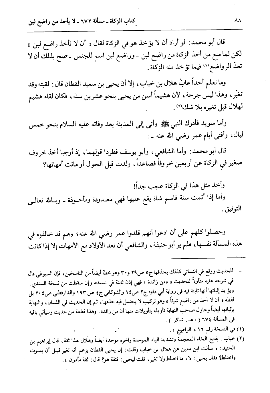 وَأَمَّا سُوَيْدٌ فَأَدْرَكَ النَّبِيَّ - صَلَّى اللَّهُ عَلَيْهِ وَسَلَّمَ - وَأَتَى إلَى الْمَدِينَةِ بَعْدَ وَفَاتِهِ - عَلَيْهِ السَّلَامُ - بِنَحْوِ خَمْسِ لَيَالٍ، وَأَفْتَى أَيَّامَ عُمَرَ - رَضِيَ اللَّهُ عَنْهُ -: قَالَ أَبُو مُحَمَّدٍ: وَأَمَّا الشَّافِعِيُّ، وَأَبُو يُوسُفَ فَطَرَدَا قَوْلَهُمَا، إذْ أَوْجَبَا أَخْذَ خَرُوفٍ صَغِيرٍ فِي الزَّكَاةِ عَنْ أَرْبَعِينَ خَرُوفًا فَصَاعِدًا، وُلِدَتْ قَبْلَ الْحَوْلِ أَوْ مَاتَتْ أُمَّهَاتُهَا؟ وَأَخْذُ مِثْلِ هَذَا فِي الزَّكَاةِ عَجَبٌ جِدًّا وَأَمَّا إذَا أَتَمَّتْ سَنَةً فَاسْمُ شَاةٍ يَقَعُ عَلَيْهَا فَهِيَ مَعْدُودَةٌ وَمَأْخُوذَةٌ - وَبِاَللَّهِ تَعَالَى التَّوْفِيقُ.
