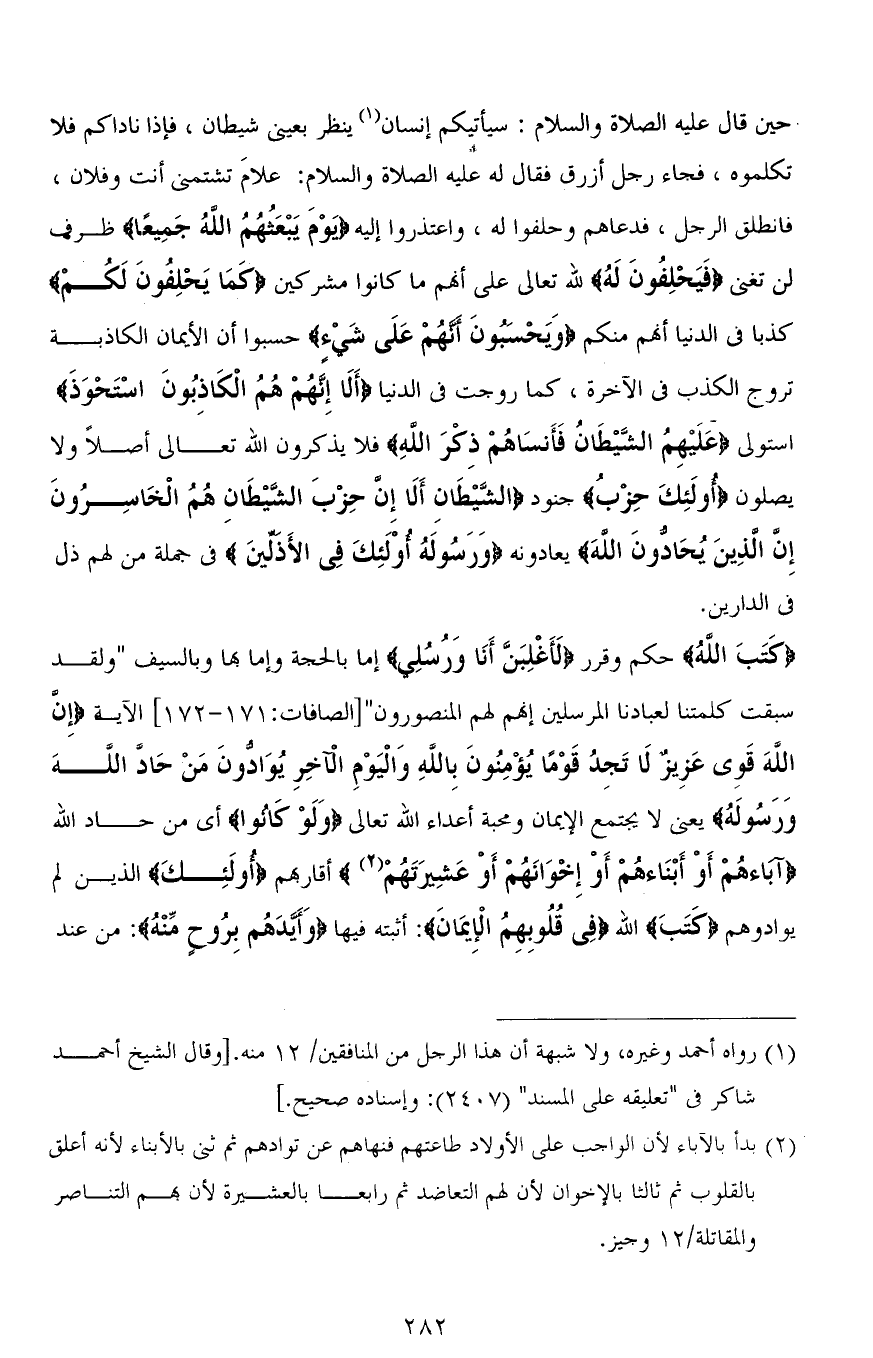 (1) رواه أحمد وغيره، ولا شبهة أن هذا الرجل من المنافقين. [وقال الشيخ أحمد شاكر في " تعليقه على المسند " (2407): وإسناده صحيح].