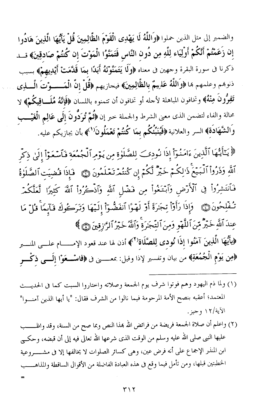 (يَا أَيُّهَا الَّذِينَ آمَنُوا إِذَا نُودِيَ لِلصَّلَاةِ مِنْ يَوْمِ الْجُمُعَةِ فَاسْعَوْا إِلَى ذِكْرِ اللهِ وَذَرُوا الْبَيْعَ ذَلِكُمْ خَيْرٌ لَكُمْ إِنْ كُنْتُمْ تَعْلَمُونَ (9) فَإِذَا قُضِيَتِ الصَّلَاةُ فَانْتَشِرُوا فِي الْأَرْضِ وَابْتَغُوا مِنْ فَضْلِ اللهِ وَاذْكُرُوا اللهَ كَثِيرًا لَعَلَّكُمْ تُفْلِحُونَ (10) وَإِذَا رَأَوْا تِجَارَةً أَوْ لَهْوًا انْفَضُّوا إِلَيْهَا وَتَرَكُوكَ قَائِمًا قُلْ مَا عِنْدَ اللهِ خَيْرٌ مِنَ اللهْوِ وَمِنَ التِّجَارَةِ وَاللهُ خَيْرُ الرَّازِقِينَ (11)