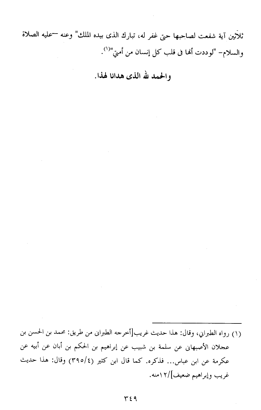 ثلاثين آية شفعت لصاحبها حتى غفر له، تبارك الذي بيده الملك " وعنه - عليه الصلاة والسلام - " لوددت أنها في قلب كل إنسان من أمتي ".