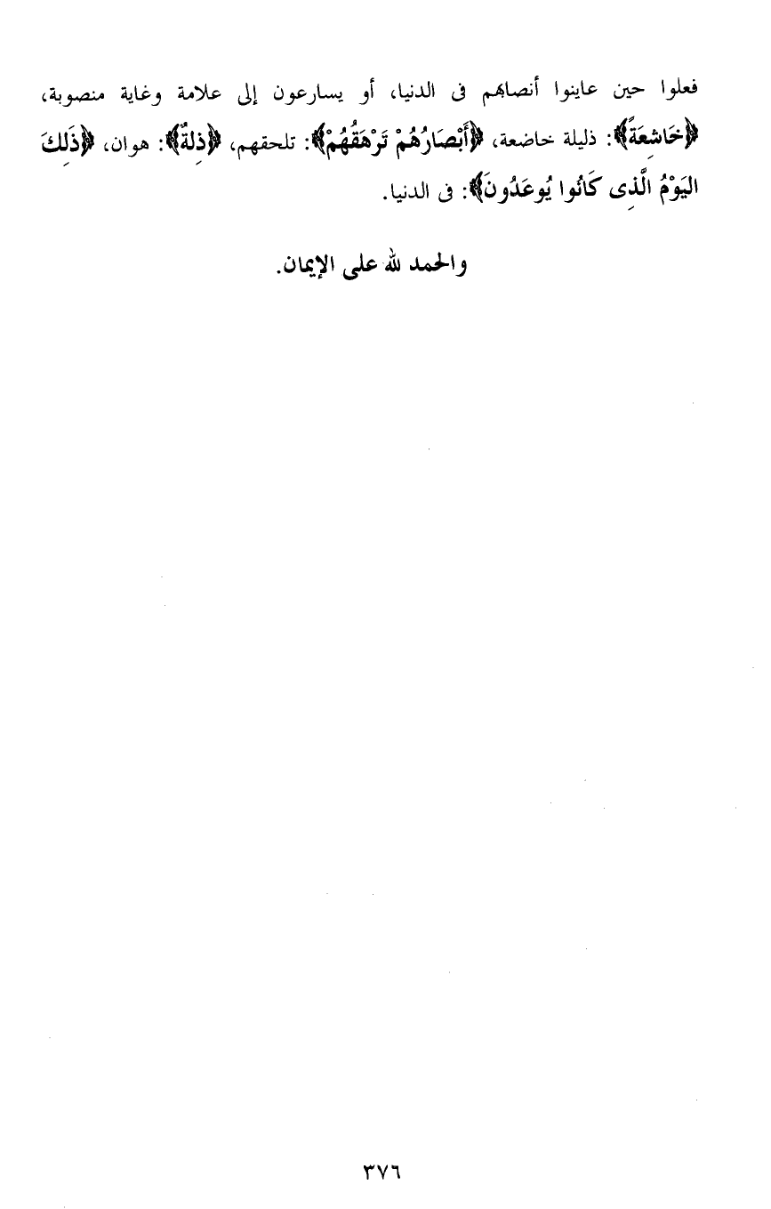 فعلوا حين عاينوا أنصابهم في الدنيا، أو يسارعون إلى علامة وغاية منصوبة، (خَاشِعَةً): ذليلة خاضعة، (أَبْصَارُهُمْ تَرْهَقُهُمْ ذِلَّةٌ): هوان، (ذَلِكَ الْيَوْمُ الَّذِي كَانُوا يُوعَدُونَ): في الدنيا.