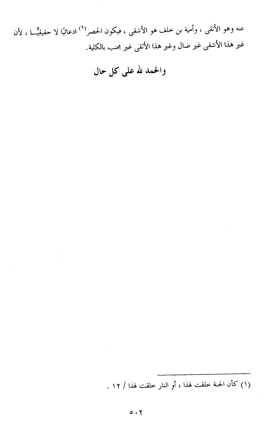 وهو الأتقى، وأمية بن خلف هو الأشقى، فيكون الحصر ادعائيًا لا حقيقيًّا، لأن غير هذا الأشقى غير ضال وغير هذا الأتقى غير مجنب بالكلية.