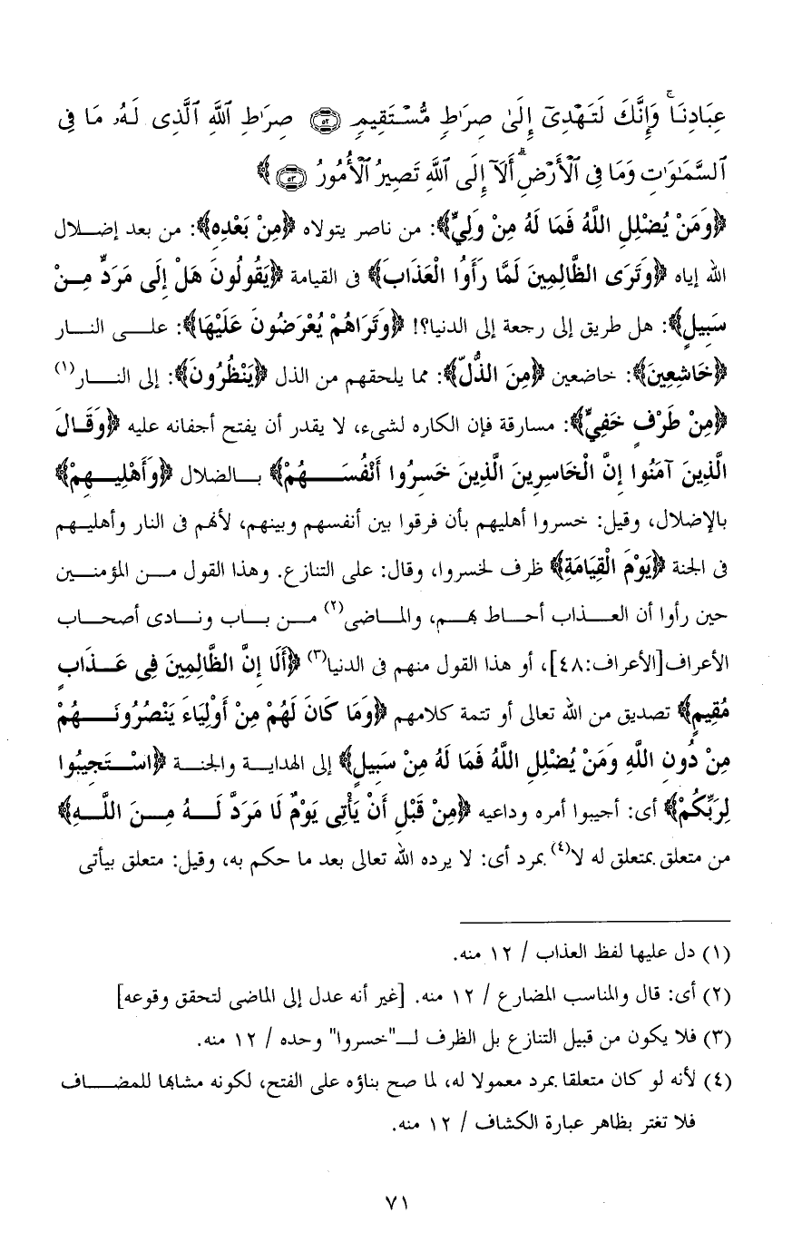 عِبَادِنَا وَإِنَّكَ لَتَهْدِي إِلَى صِرَاطٍ مُسْتَقِيمٍ (52) صِرَاطِ اللهِ الَّذِي لَهُ مَا فِي السَّمَاوَاتِ وَمَا فِي الْأَرْضِ أَلَا إِلَى اللهِ تَصِيرُ الْأُمُورُ (53)