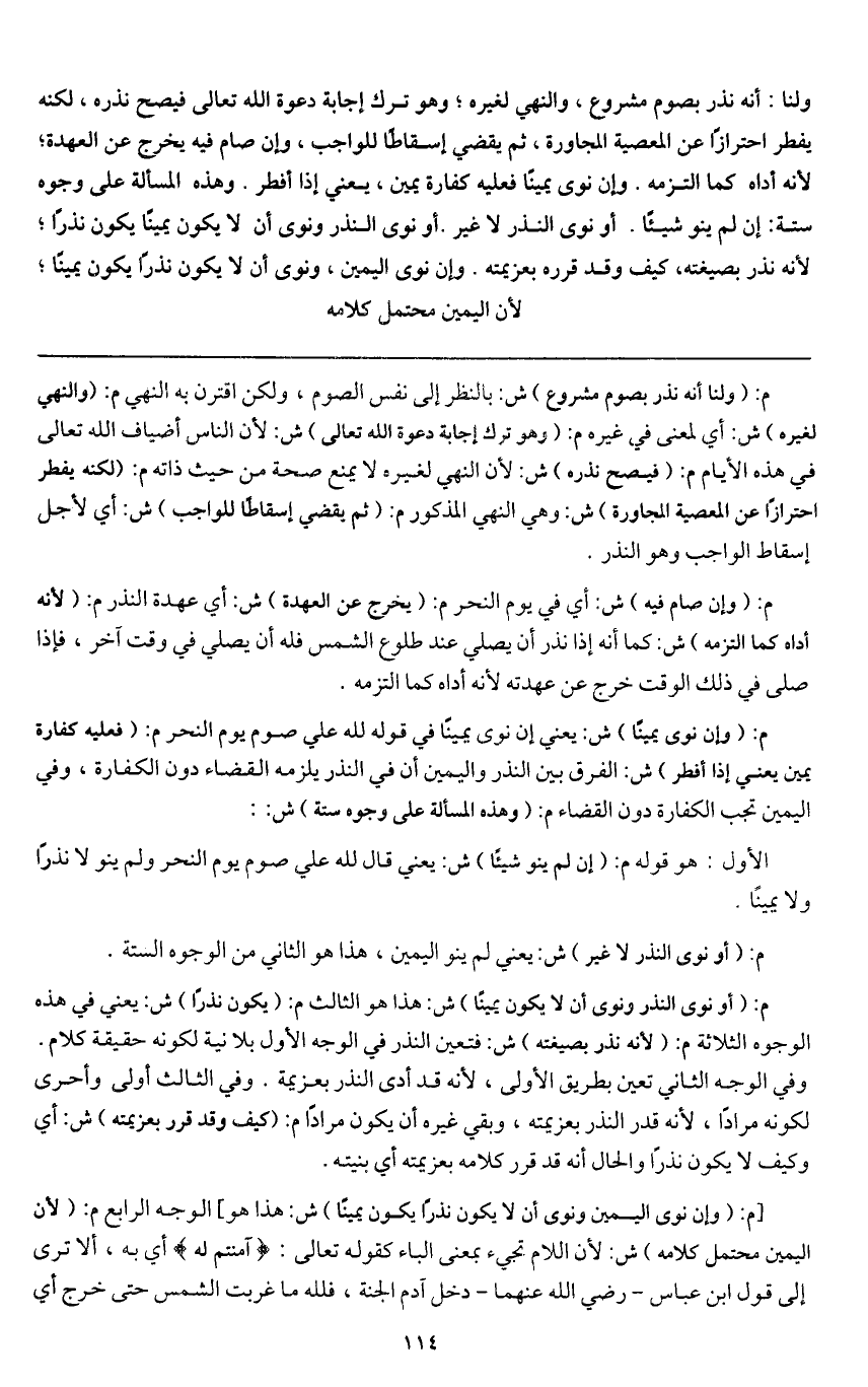 م: (أو نوى النذر لا غير) ش: يعني لم ينو اليمين، هذا هو الثاني من الوجوه الستة.