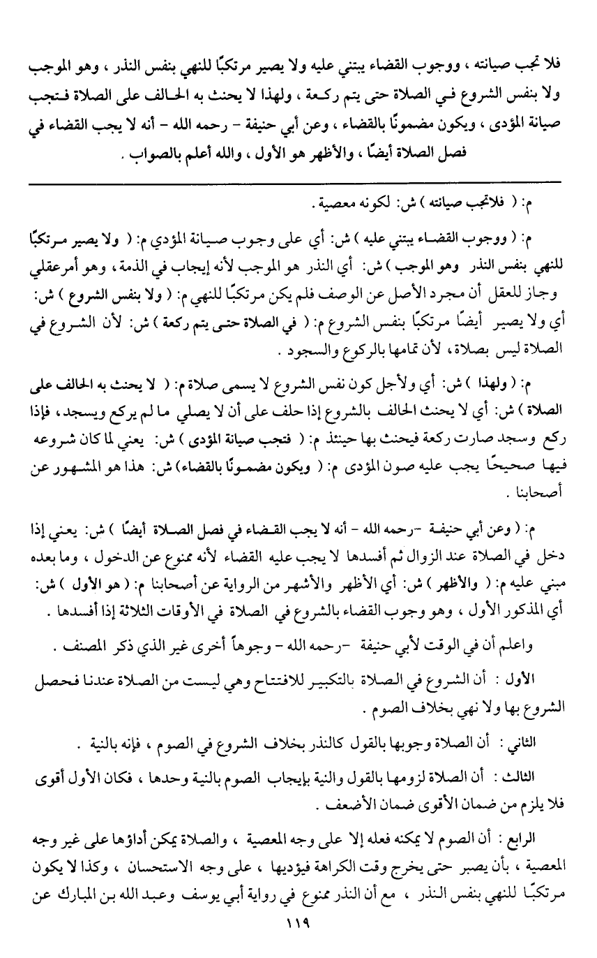 فلا تجب صيانته، ووجوب القضاء يبتني عليه ولا يصير مرتكبا للنهي بنفس النذر، وهو الموجب ولا بنفس الشروع في الصلاة حتى يتم ركعة، ولهذا لا يحنث به الحالف على الصلاة فتجب صيانة المؤدى، ويكون مضمونا بالقضاء،