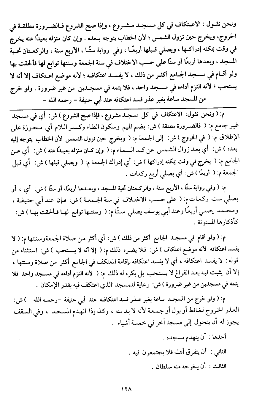 م: (ولو خرج من المسجد ساعةً بغير عذر فسد اعتكافه عند أبي حنيفة - رَحِمَهُ اللَّهُ -) ش: العذر الخروج لغائط أو بول أو جمعة لأنه لا بد منه، وكذا إذا انهدم المسجد، وفي السقف يجوز له أن يتحول إلى مسجد آخر في خمسة أشياء.