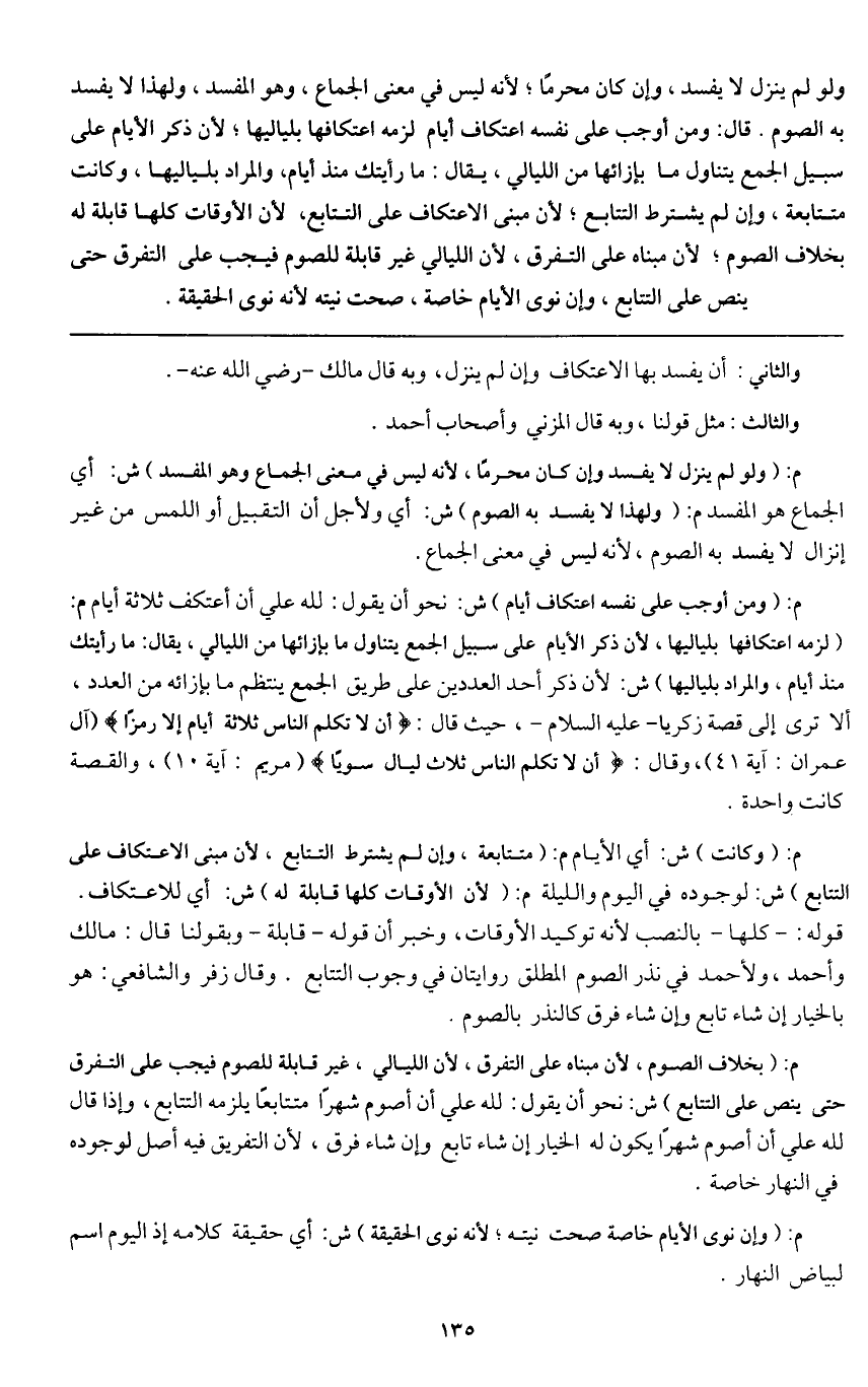 م: (ومن أوجب على نفسه اعتكاف أيام) ش: نحو أن يقول: لله علي أن أعتكف ثلاثة أيام م: (لزمه اعتكافها بلياليها؛ لأن ذكر الأيام على سبيل الجمع يتناول ما بإزائها من الليالي، يقال: ما رأيتك منذ أيام، والمراد بلياليها) ش: لأن ذكر أحد العددين على طريق الجمع ينتظم ما بإزائه من العدد، ألا ترى إلى قصة زكريا - عَلَيْهِ السَّلَامُ -، حيث قال: {أَلَّا تُكَلِّمَ النَّاسَ ثَلَاثَةَ أَيَّامٍ إِلَّا رَمْزًا} [آل عمران: 41] [آل عمران: آية 41] ، وقال: {أَلَّا تُكَلِّمَ النَّاسَ ثَلَاثَ لَيَالٍ سَوِيًّا} [مريم: 10] [مريم: آية 10] ، والقصة كانت واحدة.